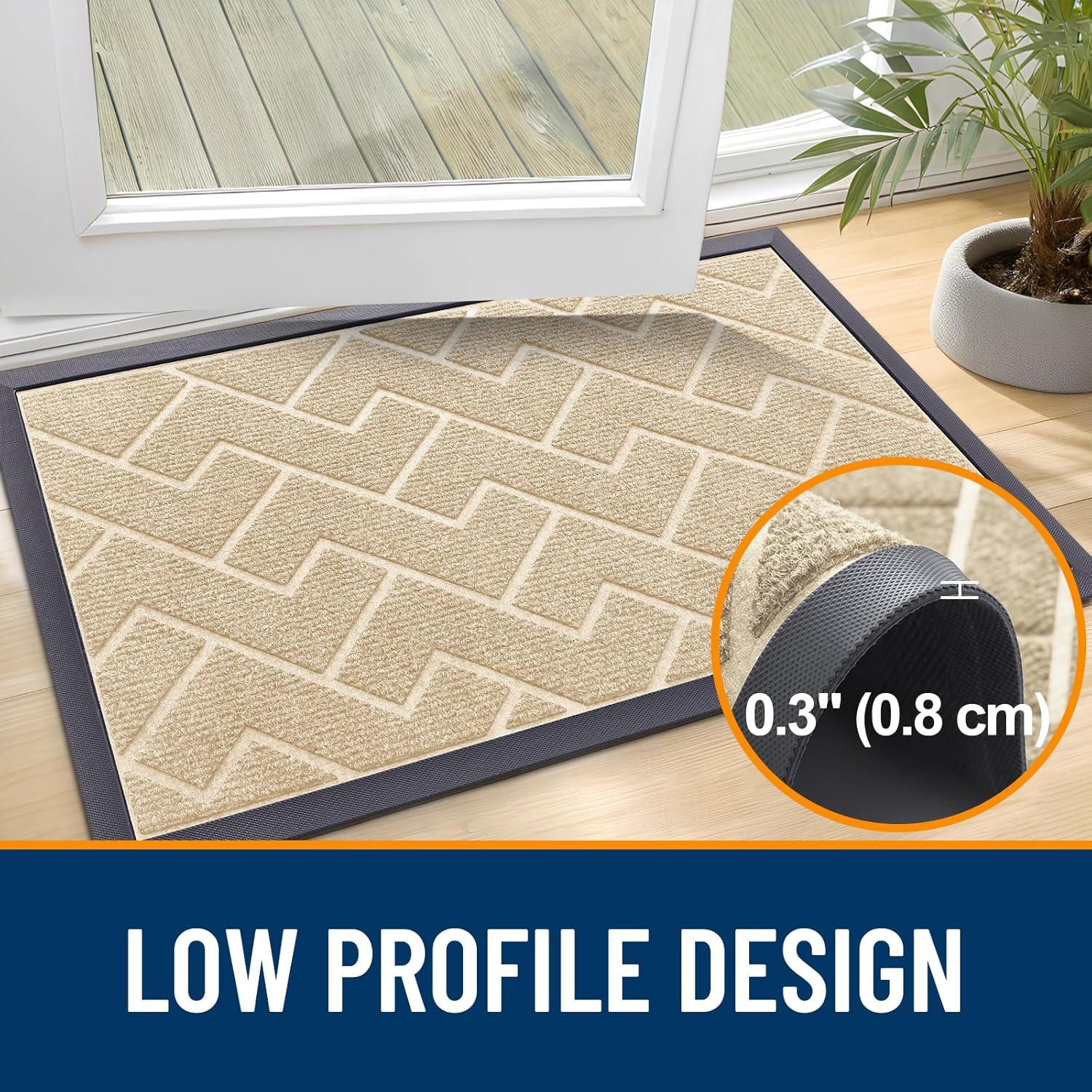 OLANLY Front Door Mat Indoor Outdoor Entrance, Waterproof All-Season, All-Weather Doormat, Sturdy Natural Rubber, Low Profile, Easy Clean Patio Porch Entryway Mat, Herringbone Brick (Beige, 59x23)
