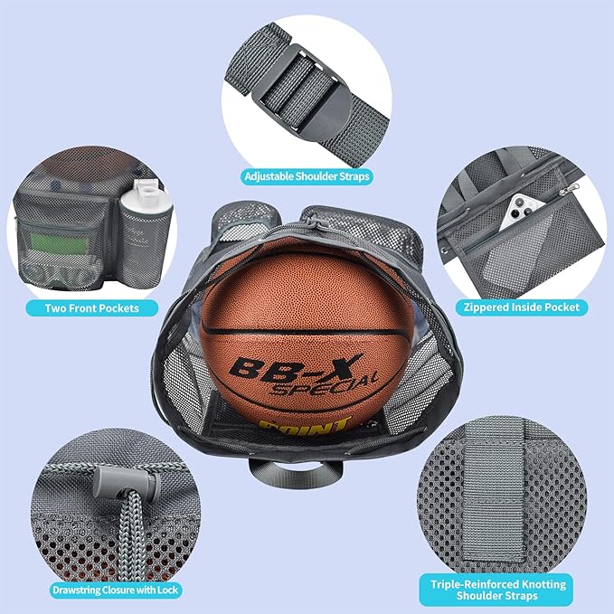 - LARGE SPACE: The main space of the drawstring mesh backpack measures 12.5" W x 5.5" D x 21" H which is big enough to hold a basketball, gym clothing, swim gear, sport towel, and daily supplies. Perfect for gym, sports, beach, trip, travel, camping, hiking, and more! It's also a great sports gift for men and women. This mesh bag can be used as a gym sack or a sports backpack. it suitable for adults.