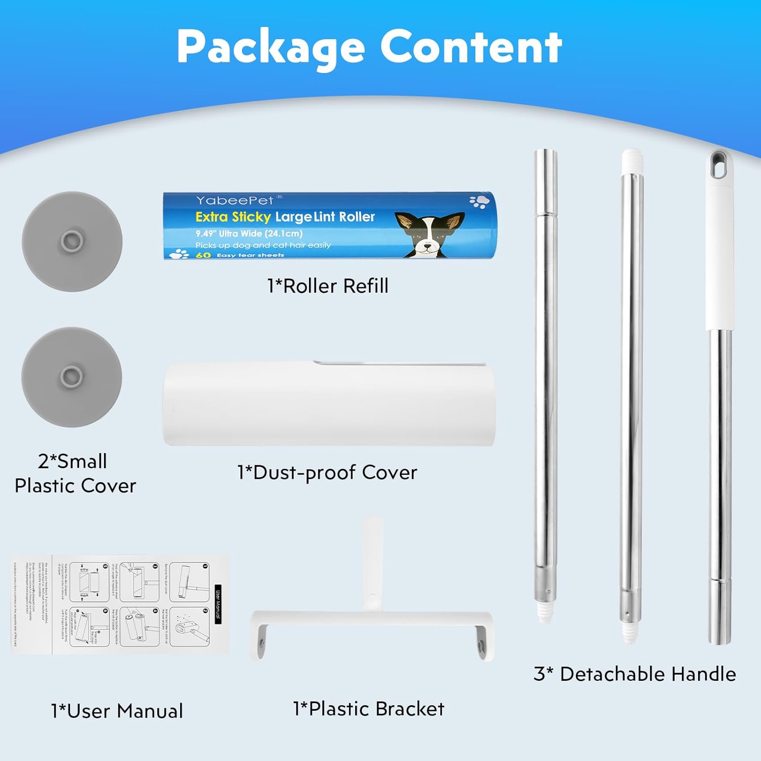 - Pet Hair & Dust Removal: The sticky pet roller sheets are designed to capture pet hair, dust, lint, and other debris from a variety of surfaces, including upholstered furniture, carpets, floors, and even clothing