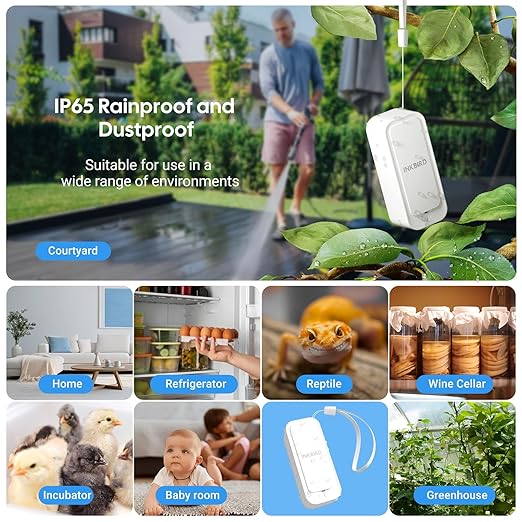 - 9-Month Battery Life & 10-Sensor Multi-Room Monitoring: Track attic, basement, fridge temps with 1 gateway. IP65 rated for humid reptile tanks or outdoor sheds. Compact size fits tight spaces like cigar humidors.