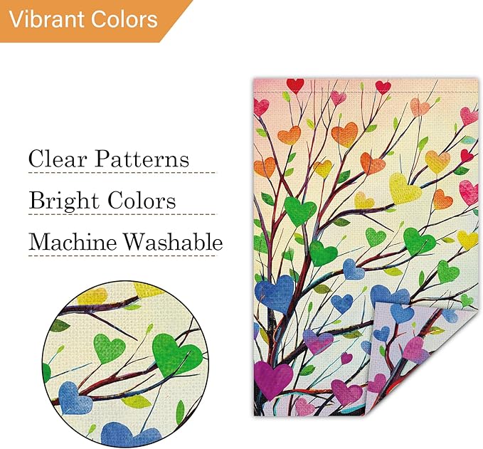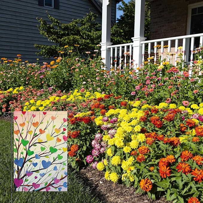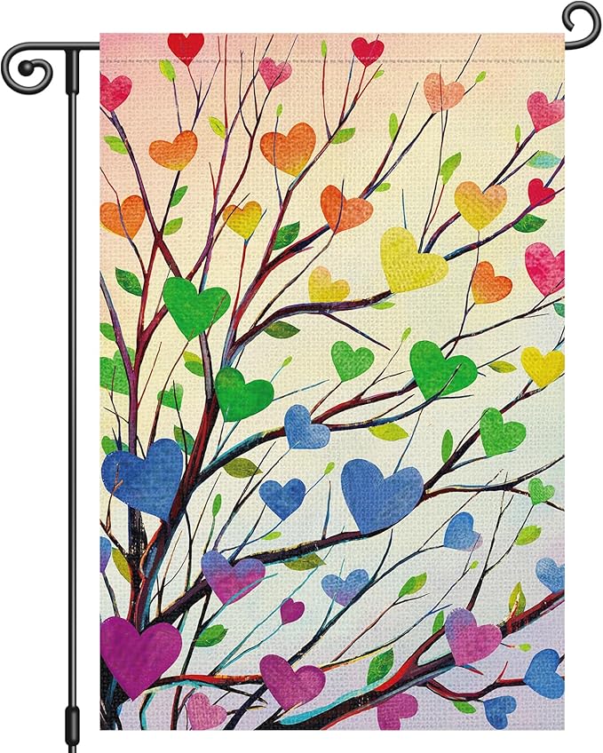 Louise Maelys Pride Garden Flag Rainbow Tree Love Heart 12x18 Inch Double Sided Welcome Small Burlap Gay Lesbian LGBTQ Yard Outdoor Sign Outside Home House Decor