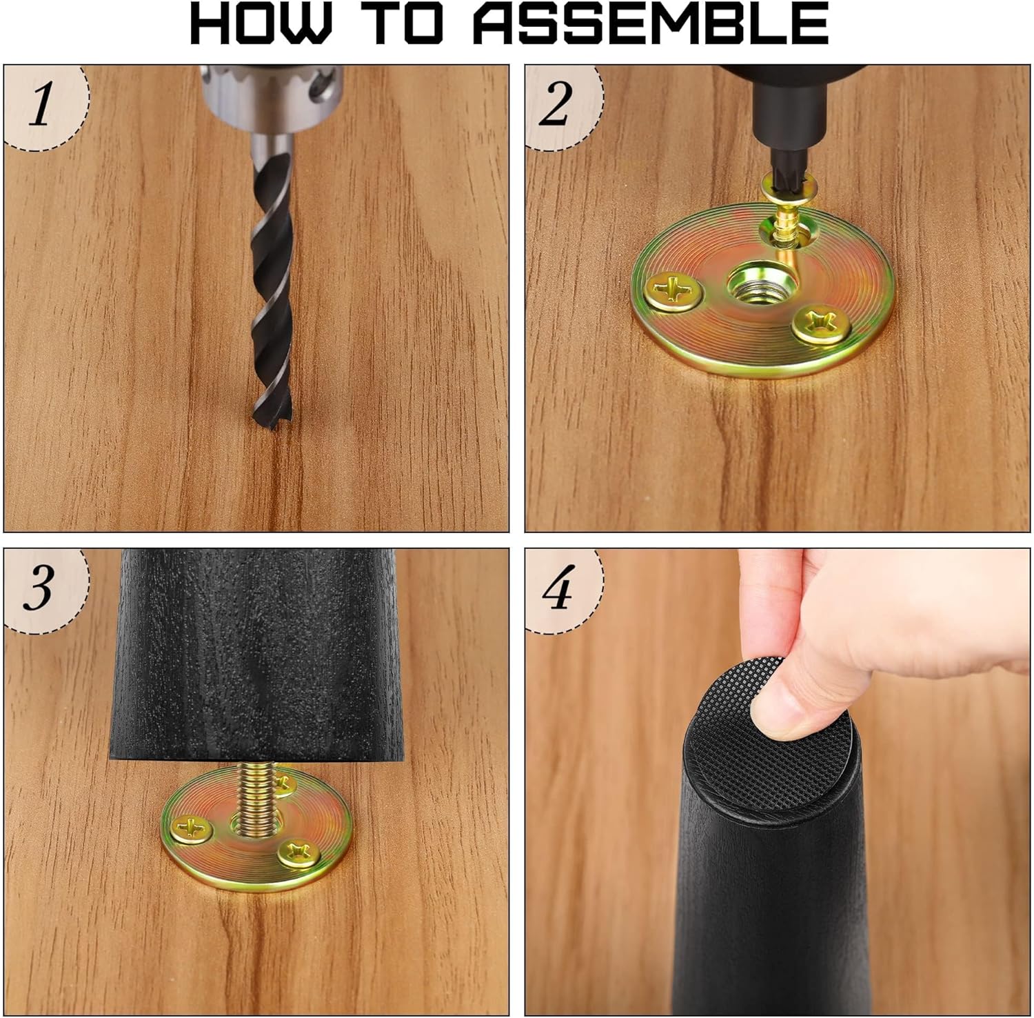 - Sufficient quantity: you will receive 16 packs of black sofa legs, 16 packs of M8 T-nuts, 48 pieces of metal screws, and 16 pieces of anti-skid pads; all accessories are complete for easy installation (Note: the maximum load-bearing capacity of the 4 furniture legs is 250 kg)