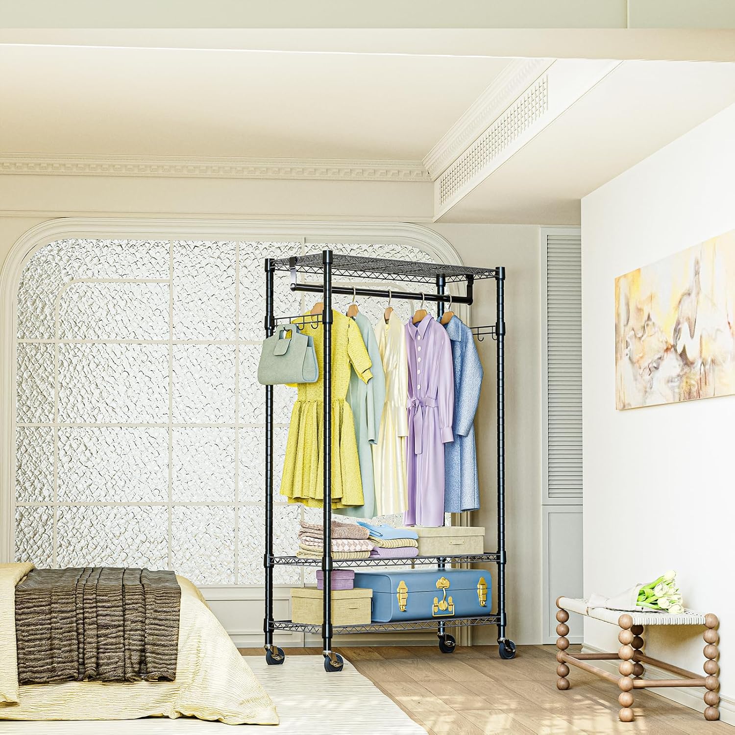 - 【Smooth Mobility with Lockable Wheels】 Equipped with 4 heavy-duty 360° swivel wheels, including 2 lockable ones, for smooth movement and secure positioning anywhere in your home.