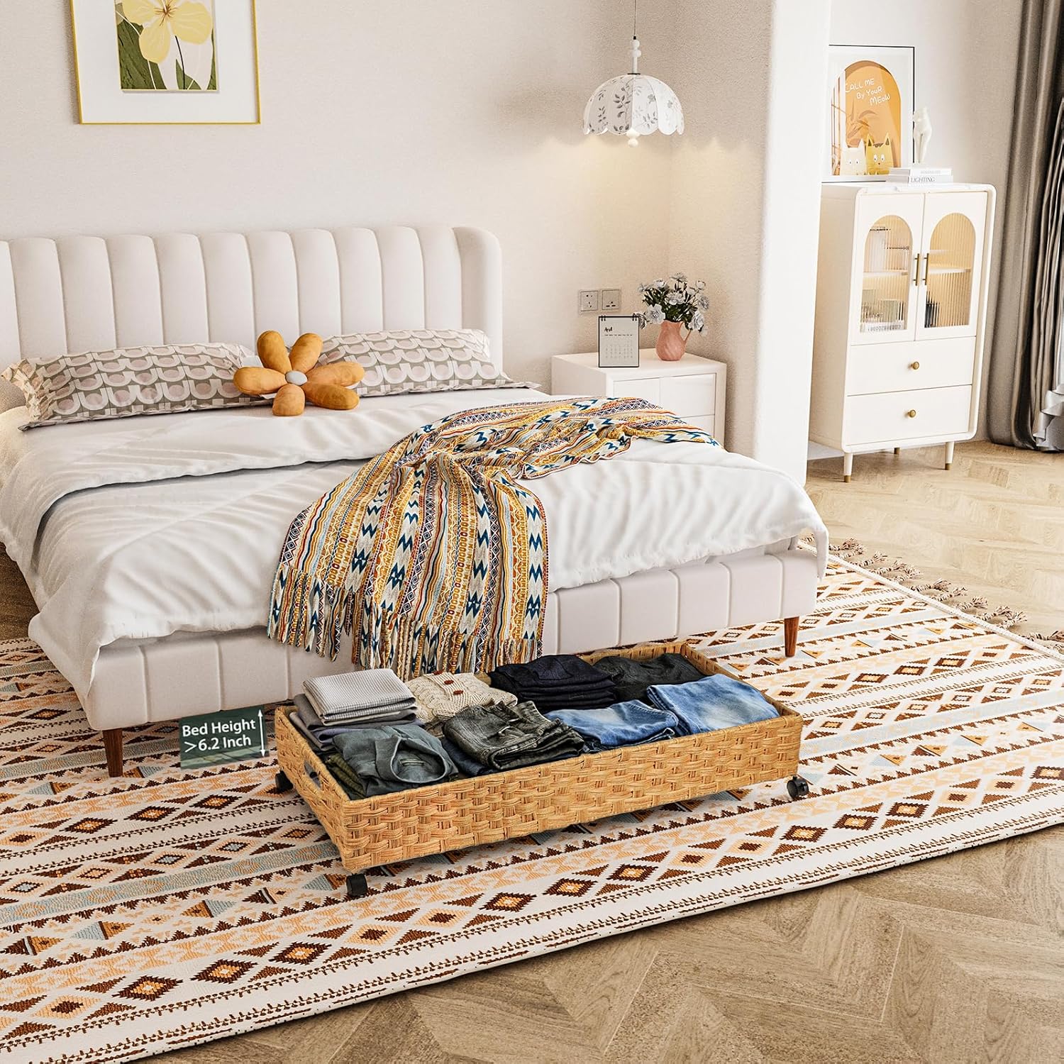 - BREATHABLE & DURABLE: Our under bed storage on wheels is made of handmade rattan weaving, which ensures air ventilation to keep your seasonal garments dry and fresh. The toughness of rattan makes underbed storage more durable.