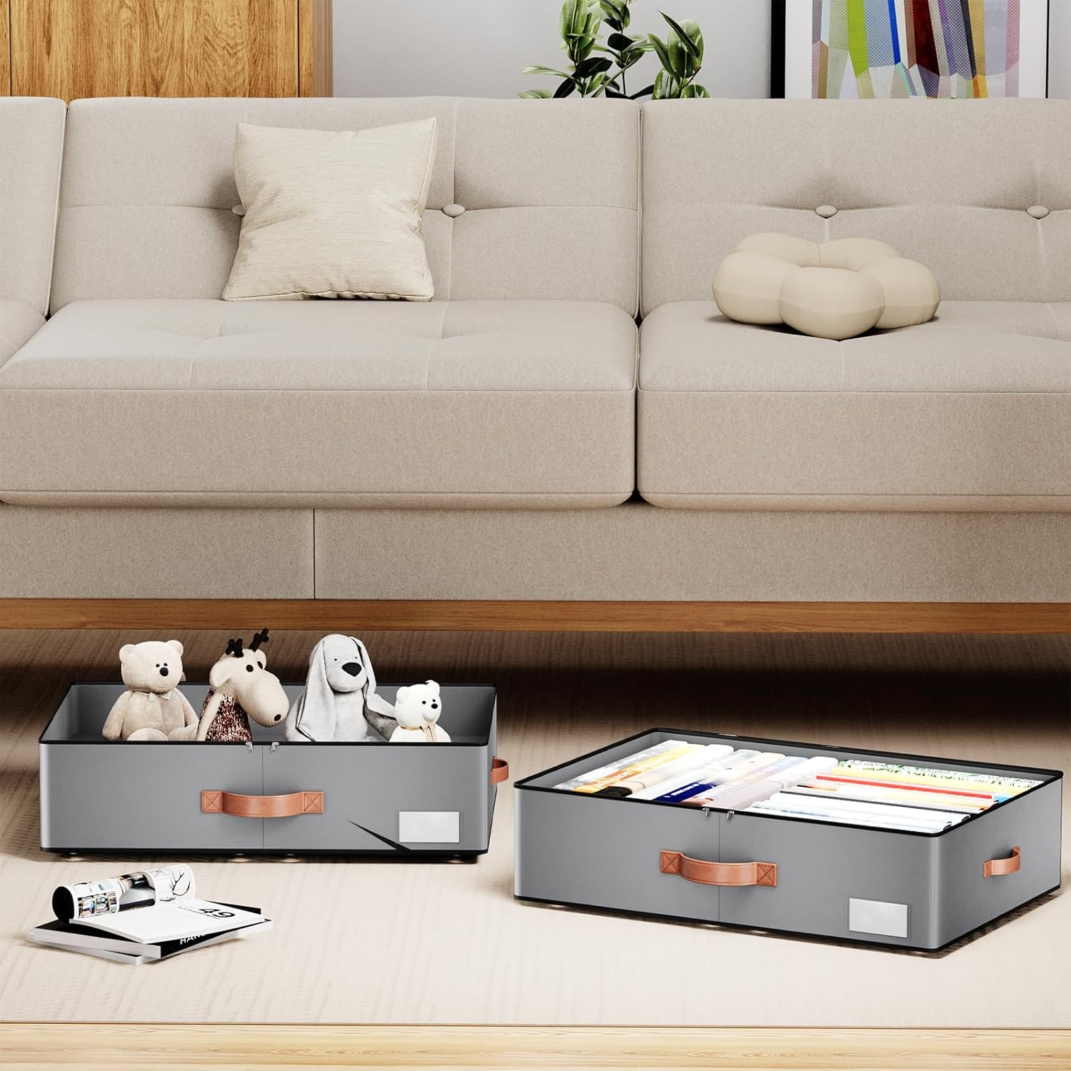 - [Multifunctional Storage Solution]: Our underbed storage box offers versatility for various storage needs. Secured with Velcro, the bottom frame and storage box can be utilized in different places, including closets, cloakrooms, bedrooms, baby rooms, under cribs, and dorms. It's perfect for storing seasonal clothes and everyday items. When not in use, simply fold them up to save space.