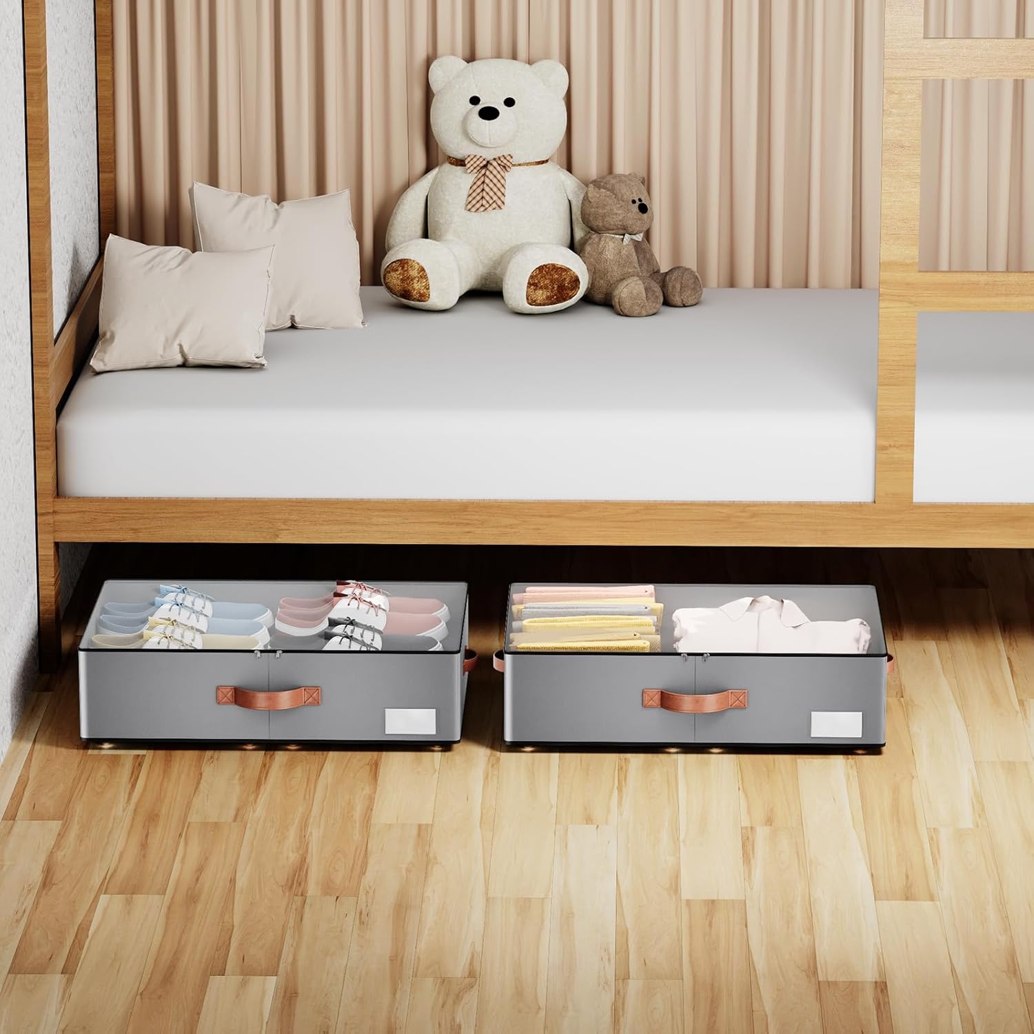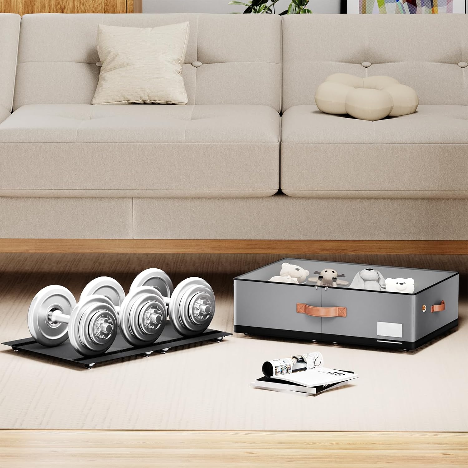 - [Strong Weight-Bearing Capability]: Made of durable oxford fabric, our underbed storage is built to withstand heavy weights. The bottom bracket is reinforced with hard wood, providing superior support compared to other elastic band structures. You can confidently store items weighing up to 40 pounds, such as books, However, when placing heavy objects above, please be careful to move slowly to prevent the wheels from being damaged by excessive lateral force!