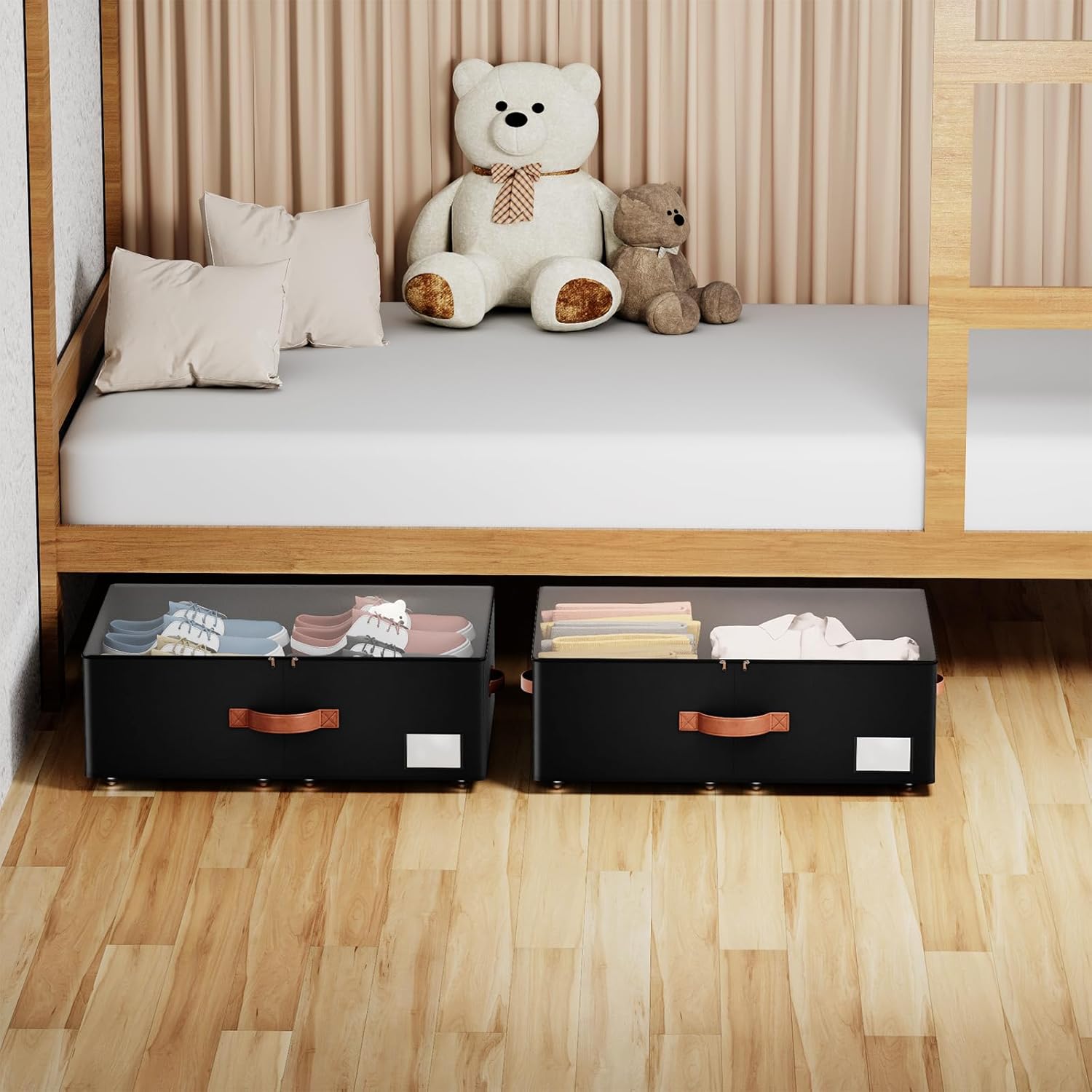 - [Strong Weight-Bearing Capability]: Made of durable oxford fabric, our underbed storage is built to withstand heavy weights. The bottom bracket is reinforced with hard wood, providing superior support compared to other elastic band structures. You can confidently store items weighing up to 40 pounds, such as books, However, when placing heavy objects above, please be careful to move slowly to prevent the wheels from being damaged by excessive lateral force!