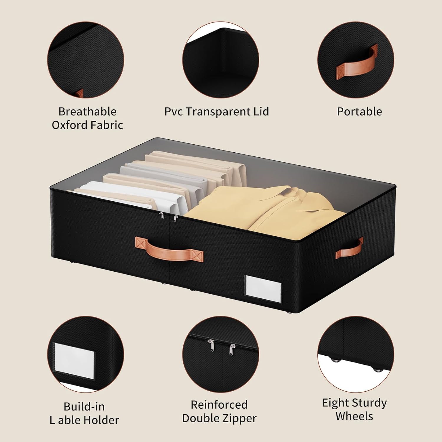 - [Easy to Move and Store]: Our Leatherspaces underbed storage with wheels allows for effortless mobility, making it a breeze to pull in and out from under the bed. With 8 packs of 360° rotating wheels, you'll experience smoother sliding and better support when accessing your items.