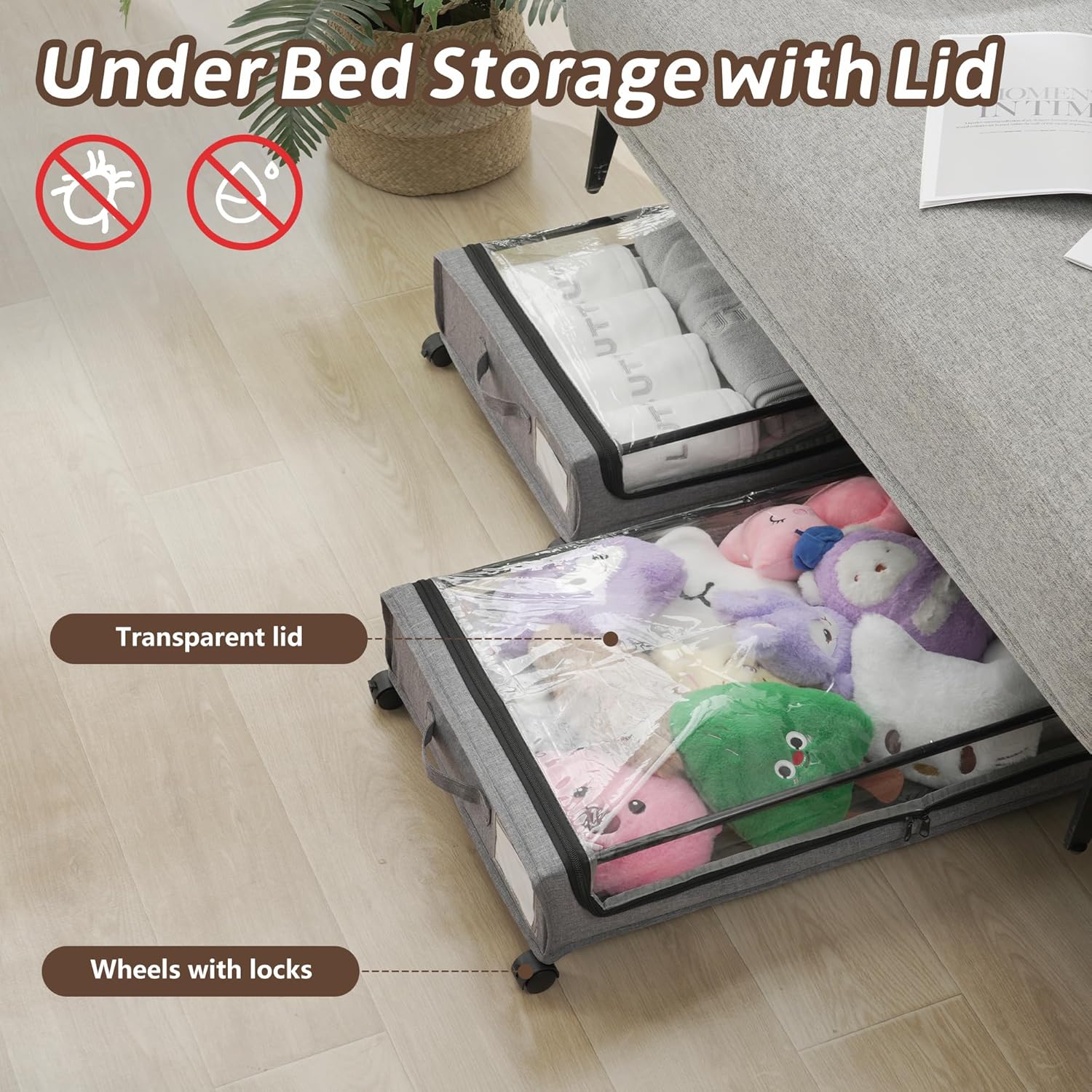- 【Clear Lid Design for Instant Access】The under bed storage with lids features a transparent top and dual zippers. Instantly view contents like shoes, toys, or bedding without unzipping, while dust-proof fabric keeps items fresh.