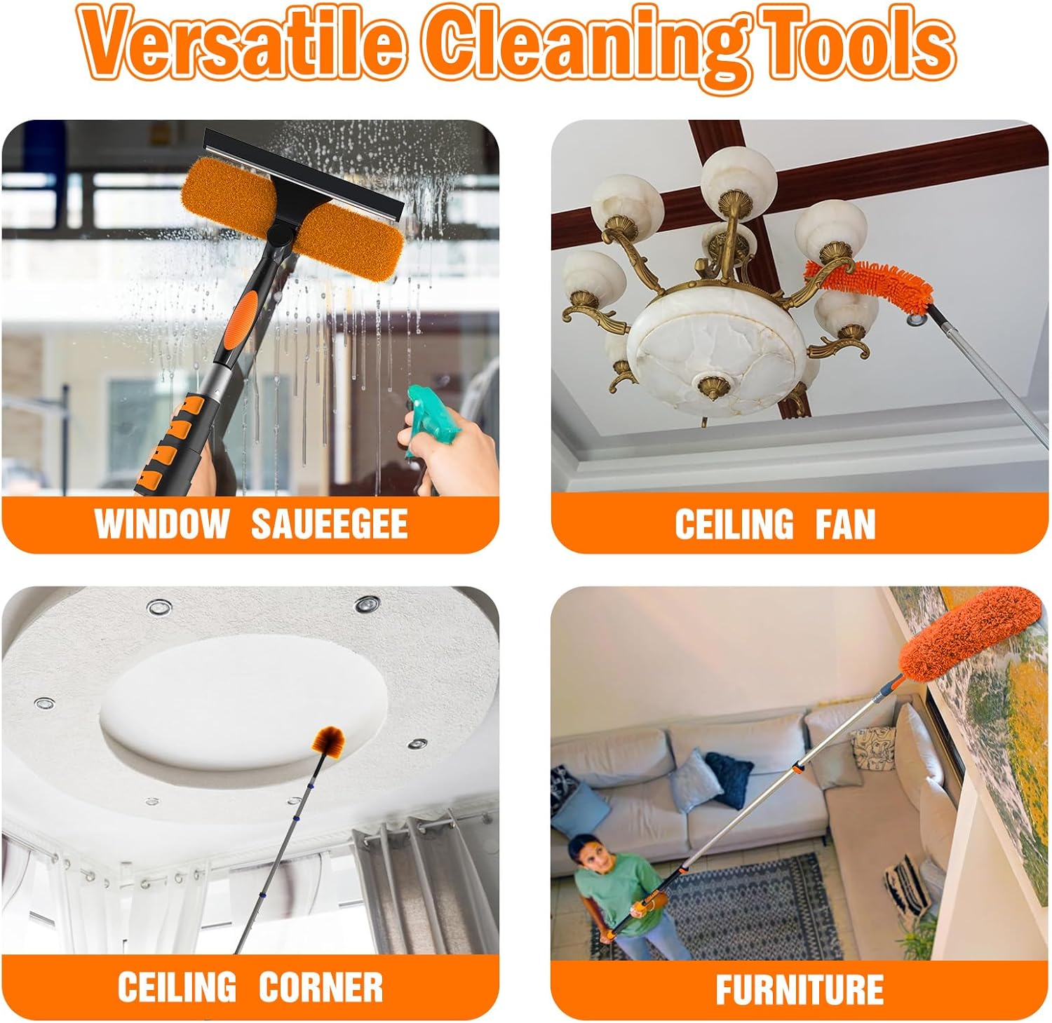 20FT High Reach Duster Cleaning Kit with Extension Pole, High Ceiling Fan Cleaner Duster Tool for Fan Blades, Window Washing Kit with Microfiber Feather Duster & Window Squeegee