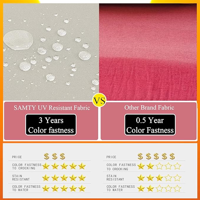 - 【UV Fade Resistant】Samty Solution-Dyed fabric is used to ensure that each fiber is deeply dyed, and it can maintain vitality even after extensive use, and can withstand 1500 lightfast hours of UV fade resistance.