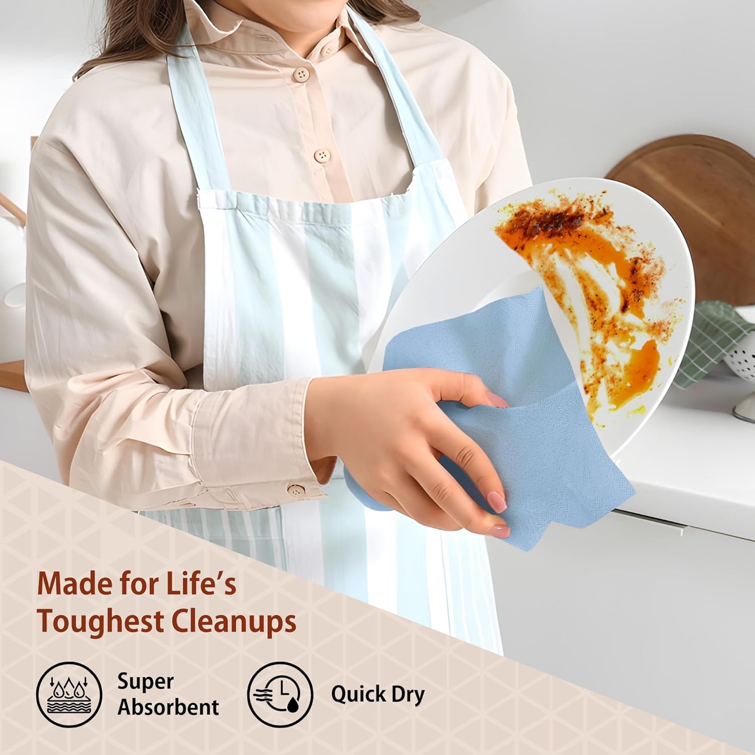 H4N Microfiber Cleaning Cloth Roll, 85 Pack Micro Fiber Wash Cloths for Car, Tear Away Towels, Ultra Absorbent Dish Rags, Non-Abrasive, Reusable and Washable Household Supplies, 11.81" x 11.81", Blue