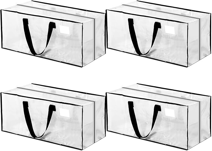 4 Pcs 24 Gallon Large Moving Bags with Zipper and Handles Foldable Storage Duffle Bags Heavy Duty Extra Large Totes for College Dorm Travel Clothes Blankets Bedding Moving (Clear)