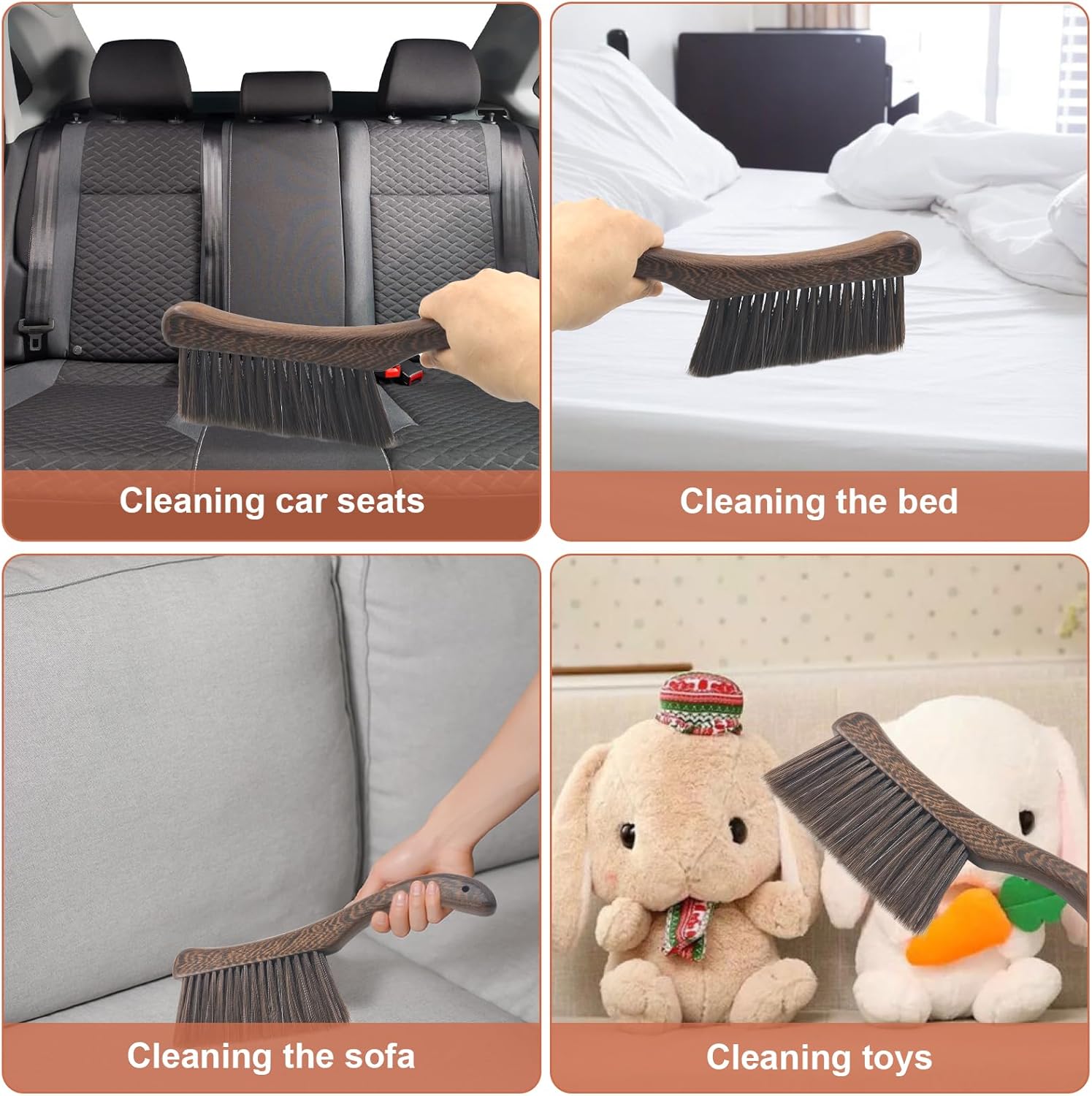 - 【Wide Range of Uses】Wooden bench brushes can be used to clean dust and wood chips, but also can be used to clean carpets, sofa cushions, beds, wooden bars, car cushions, coats, clothes, blankets, cabinets, bedspreads, TV screens, computers, keyboards, living rooms, kitchens, desktops, coats, fireplaces, window sills and so on.