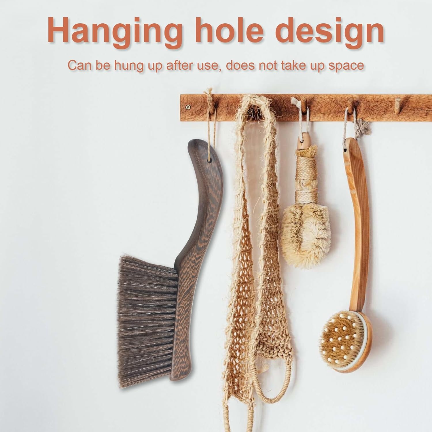 - 【High Quality Dusting Brush】You will receive 1 pcs curved handle wooden broom brush, the curved handle measures 12.8 x 4.3 x 0.8 inches, the bristle length is 2.8 inches, suitable for most home cleaning. Hanging holes on the handle make it easy to hang the brushes anywhere for drying