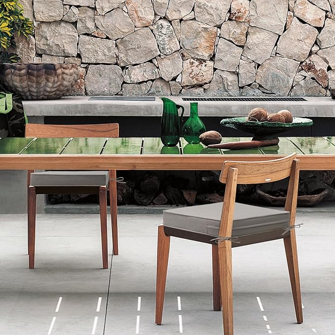 Sunbrella Square Corner Seat Cushions, 18.5" x 16" x 3", Set of 4, Indoor Outdoor Water Repellent Universal Chair Pads with Ties for Patio Furniture, Garden Dining Chairs, Specrtum Pebble