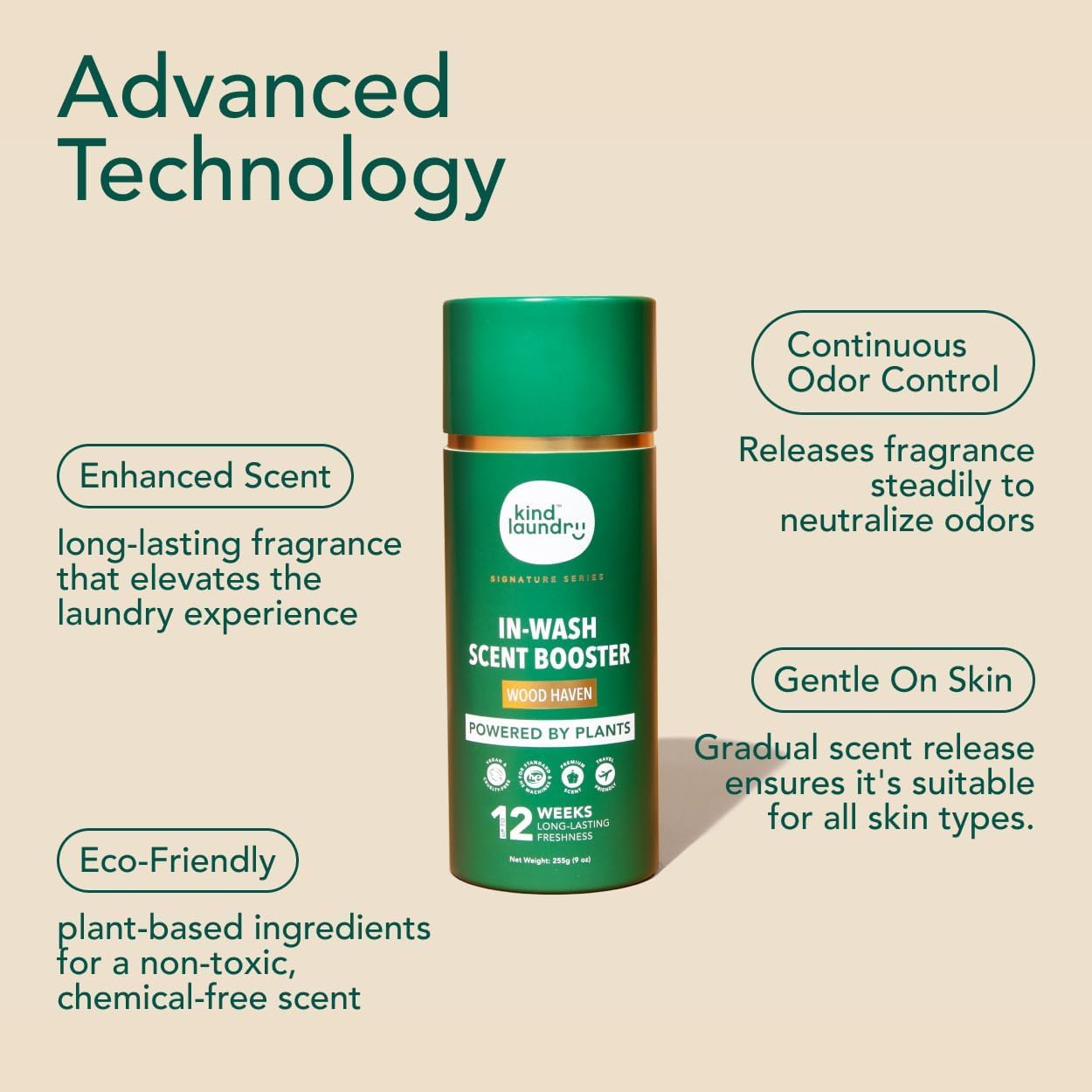 Kind Laundry In Wash Scent Booster Beads - Wood Haven - 100% Plant Based - Natural Laundry Booster Beads & Smell Deodorizer - Environment Friendly Odor Eliminator for Clothes (320 grams)