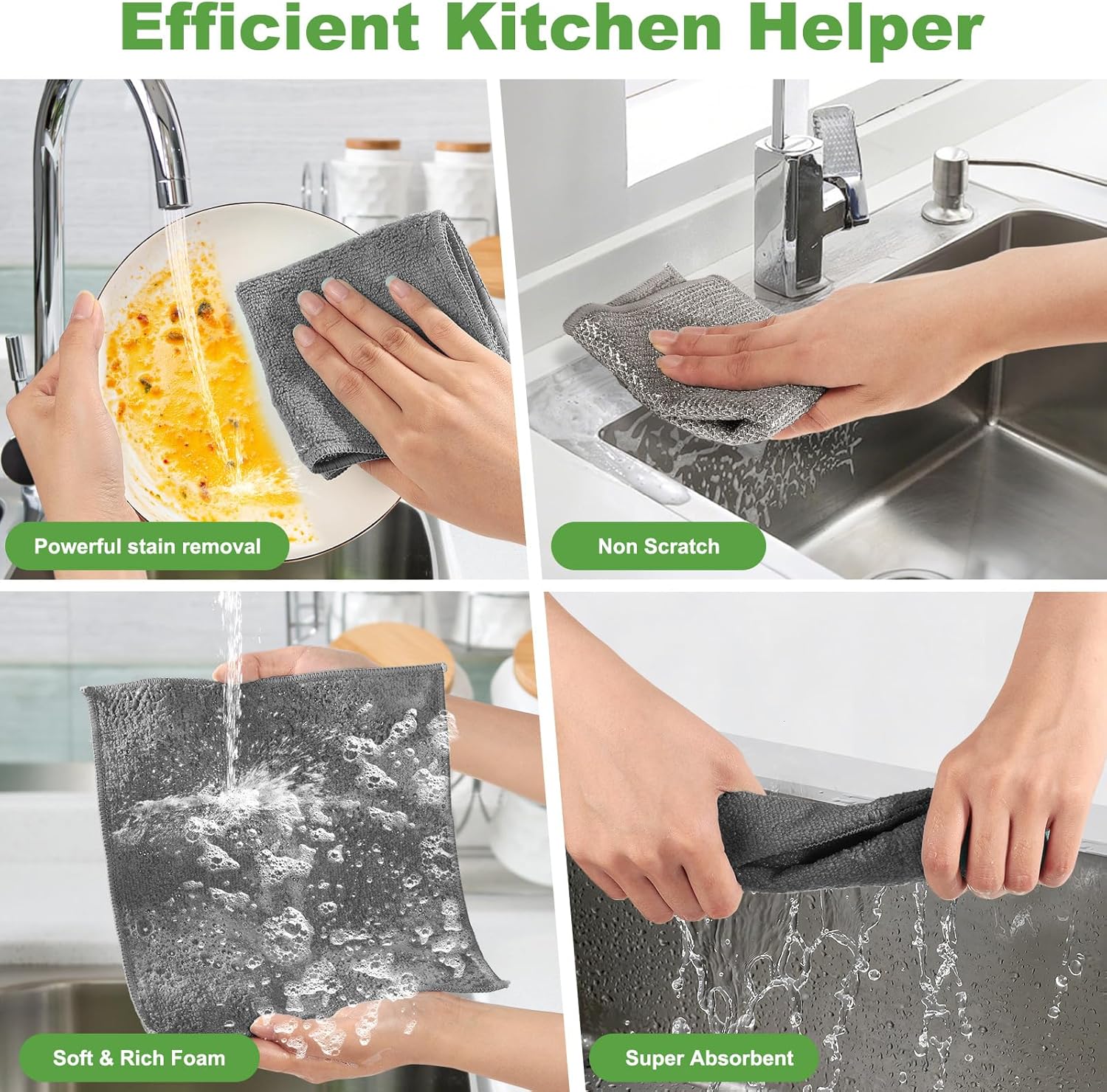 10 Counts Multipurpose Wire Dishwashing Rag,Non Scratch Wire Dishcloth,Microfiber Miracle Cleaning Cloth with Mesh,Dual-Sided Steel Mesh Cloth for Pot,Metal Scrubber for Washing Dishes,Grey