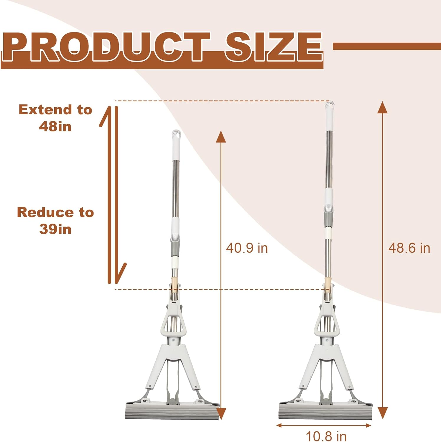 - SUPER ABSORBENT SPONGE HEAD: Made with high-quality sponge material, it absorbs water strongly and cleans stains effortlessly. Suitable for various floor types such as wood, marble, and tiles, ensuring excellent cleaning results.