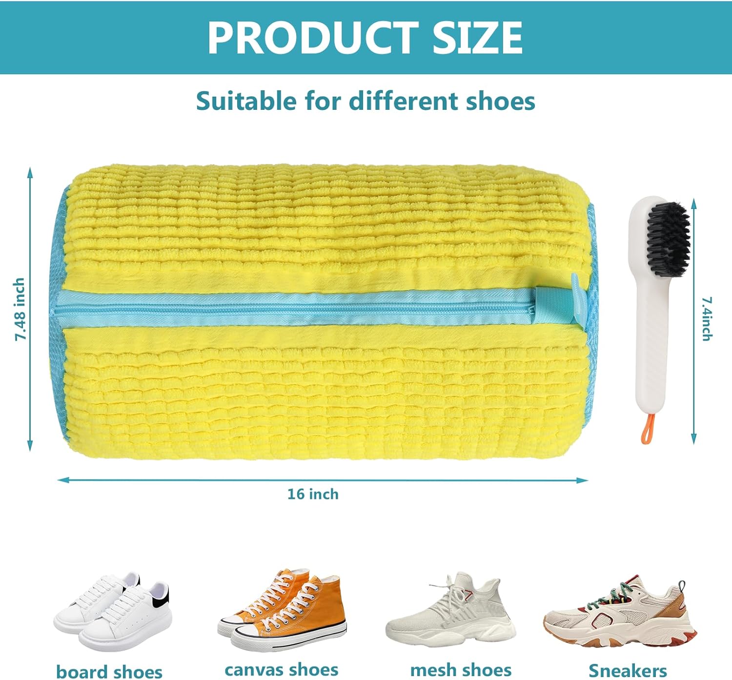 Shoe Washing Machine Bag - 2Pack Laundry Shoe Bag for Washer and Dryer, Reusable Shoe Cleaning Bag for All Shoe Sizes, 360° Deep Clean for Tennis Shoes, Sneakers, Includes 1 Brush (Yellow)