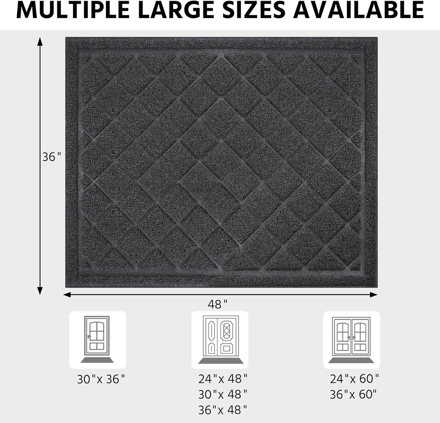 Front Door Mat Indoor Outdoor Entrance, 36" x 48" Heavy Duty All-Season All-Weather Waterproof Doormat Trap Dirt and Moisture Easy Clean Low Profile Patio Porch Entryway Mat