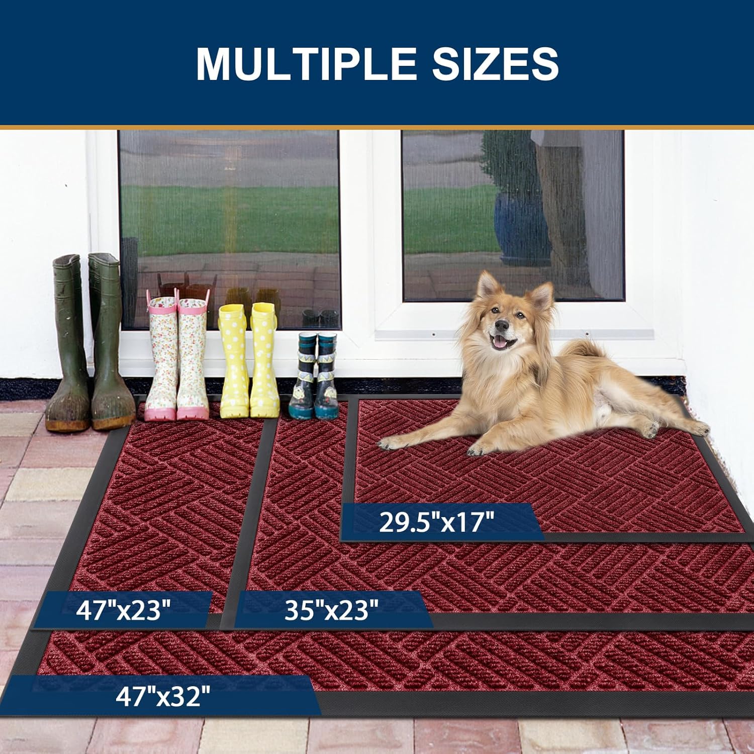 Smiry Front Door Mat Outside Entrance, Heavy Duty Outdoor Indoor Mat, Natural Rubber Doormat, Non Slip, Trap Dirt and Moisture, Easy Clean, Low Profile Patio Porch Entryway Mat, 71x23, Wine Red