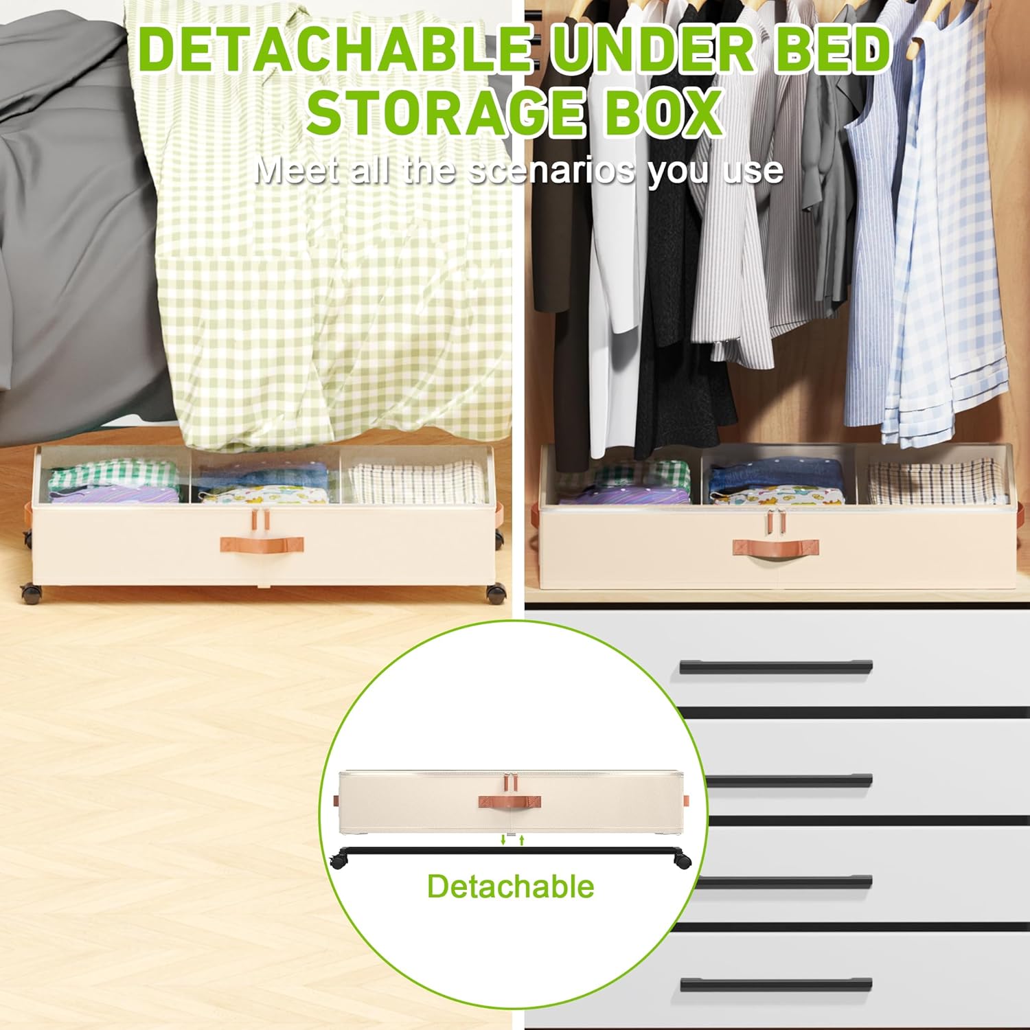 - 【Label & Clear Lid Design】Our rolling under the bed storage bins are equipped with transparent lid Windows & Label design, without having to open multiple containers or boxes, that make it easy to quickly identify the contents of your locker, Prevent items from being misstored. The bottom of the bed storage box with double zipper design and high quality material, completely keep dust, moisture and dirty things out, to ensure that your items clean and dust-free, say goodbye to clutter!