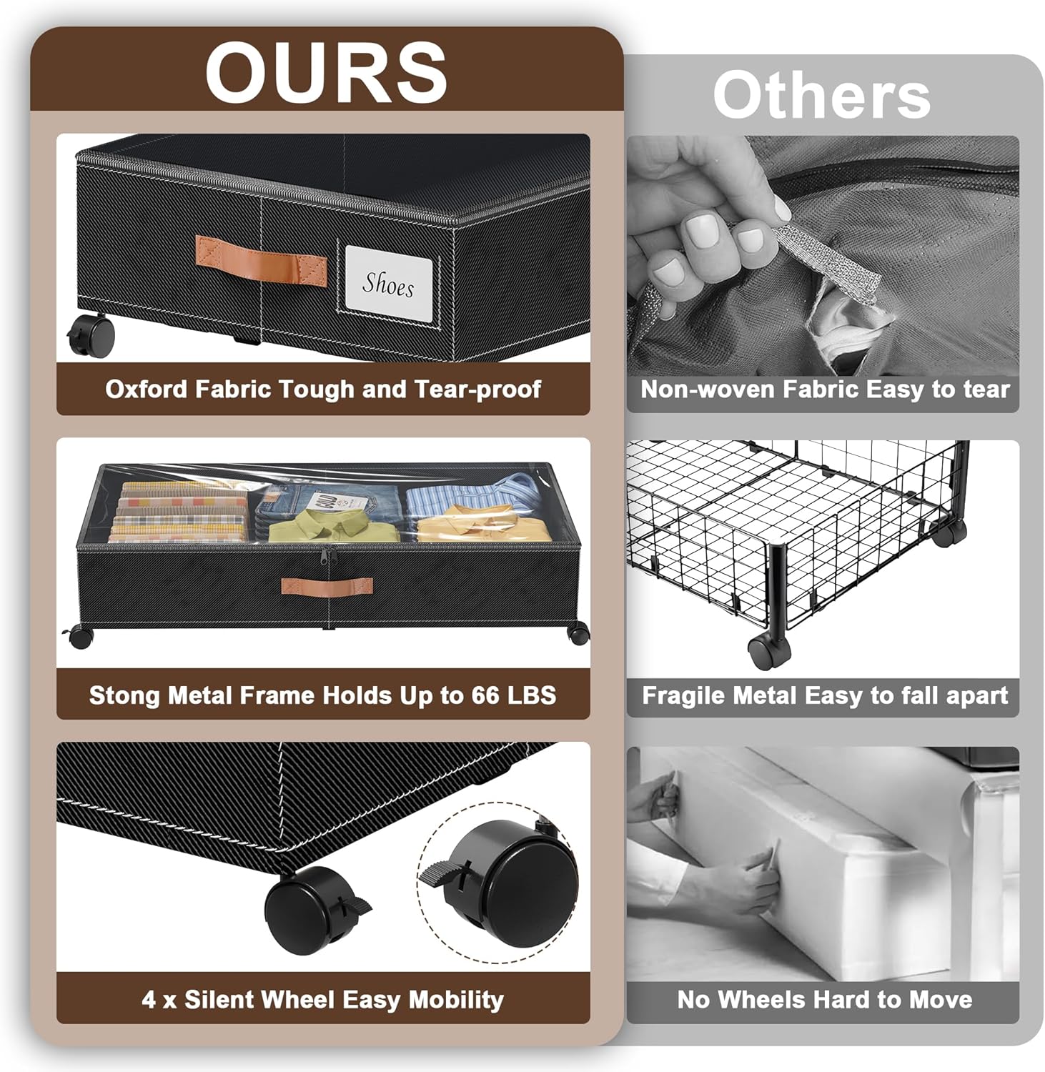 - 【65lbs Large Capacity】DGFCK under bed storage with wheels is made of high quality 600DPU fabric and strong metal frame, It is more durable than other fragile metal nets, The perfect design can hold up to 65 pounds and is spacious, perfect for storing clothes, books, toys, shoes, bedding and other items, getting the most storage space in the least space without compromising stability and durability!