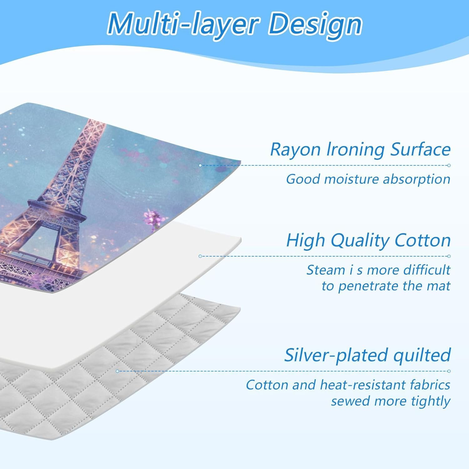 Ironing Mat Portable Ironing Pad Ironing Blanket for Table Top Heat Resistance Double-Side Using Travel Large 47.2 x 27.6 Inch Foldable Lightweight Lavender Eiffel Tower Purple