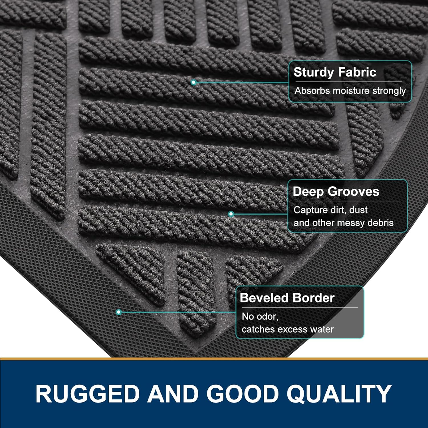 - Capture Dirt and Moisture: The surface of the Smiry door mat is crafted from woven polyester fabric. The deep grooves can effectively trap the dust, gravel, mud, sand and other clutter. The sturdy beveled rubber edge will not accumulate water. Even rainy, snowy or muddy weather will keep your home dry and clean
