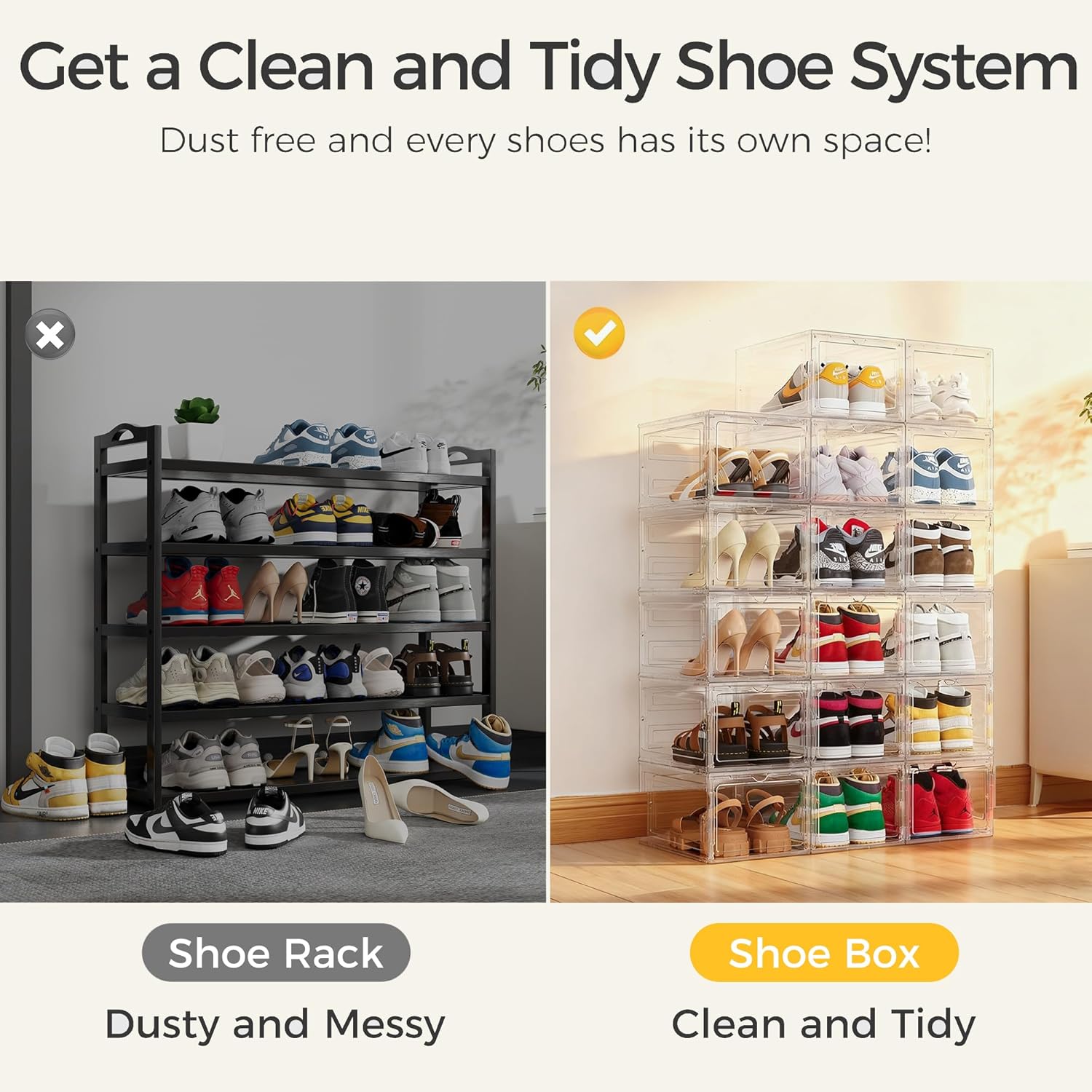 - Ultra Clear for Display: Standout display-ready design with 360Β° clear panels. Unlike standard half clear shoe boxs, our hignly clearly magnetic doors let you instantly locate and showcase your sneaker collection like retail displays.