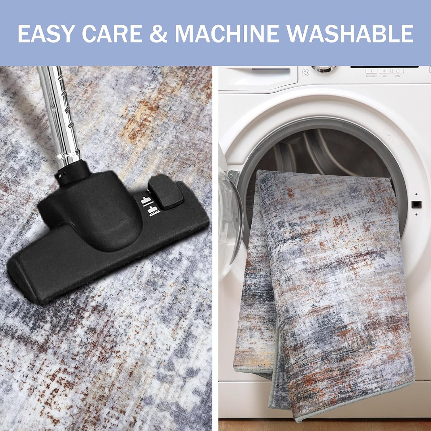 - Modern Abstract Printed Design: Transform your home with the modern abstract rug, a perfect blend of art and functionality. Printed with a modern abstract pattern, Its dynamic splashes of orange, brown, and gray hues add a vibrant touch to any room