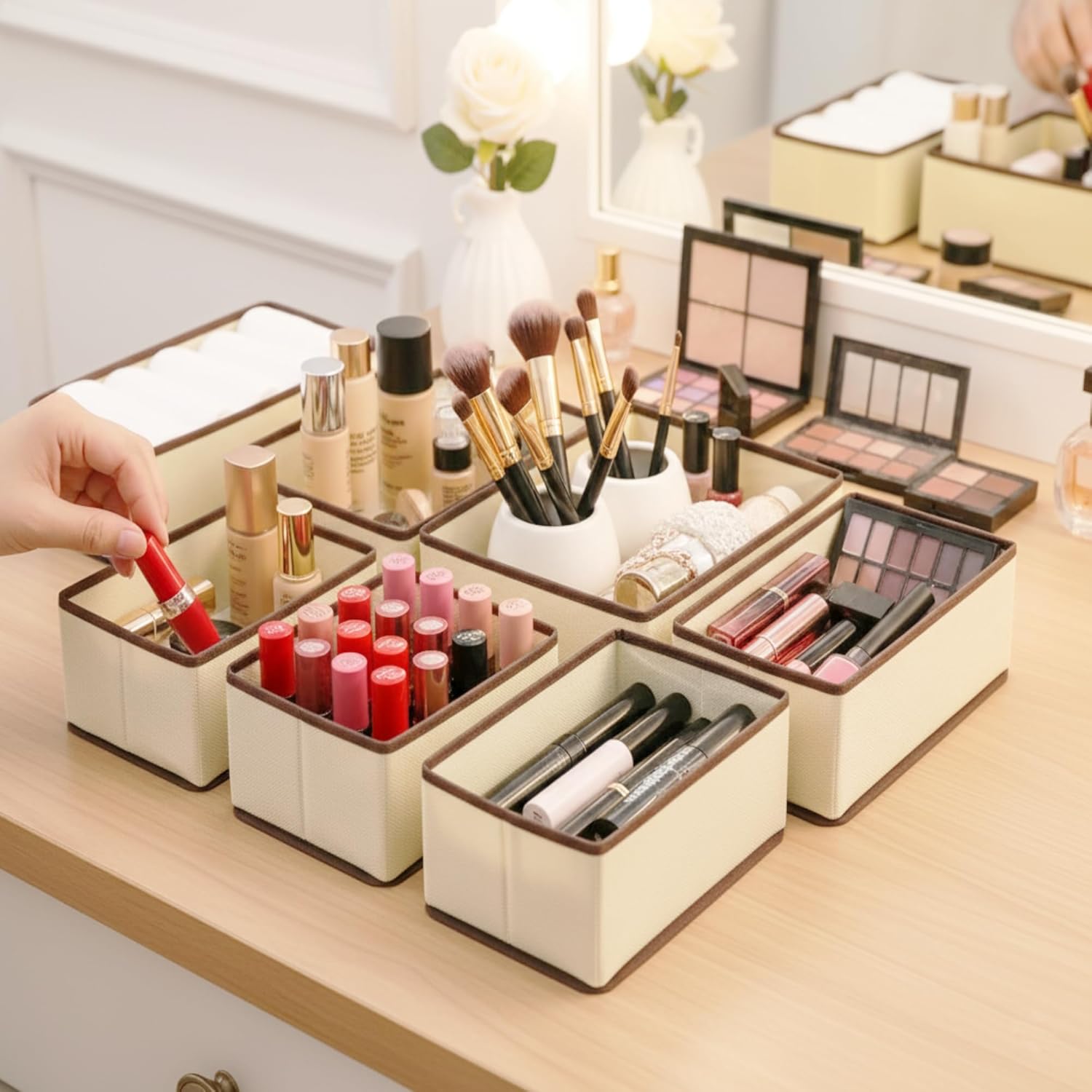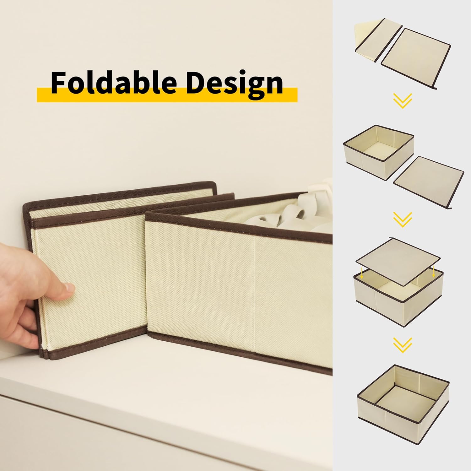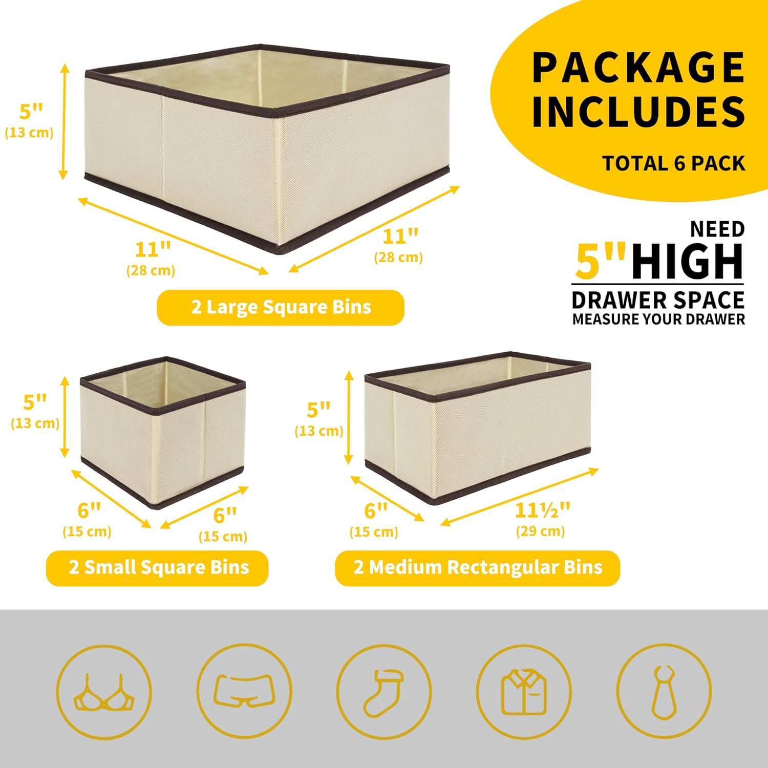 Cupic Cupid Drawer Organizer, Dresser Organizers, Foldabe Drawer Organizer Clothes, Closet Organization and Storage Dividers for Socks, Underwear and Diaper, Set of 6, Beige