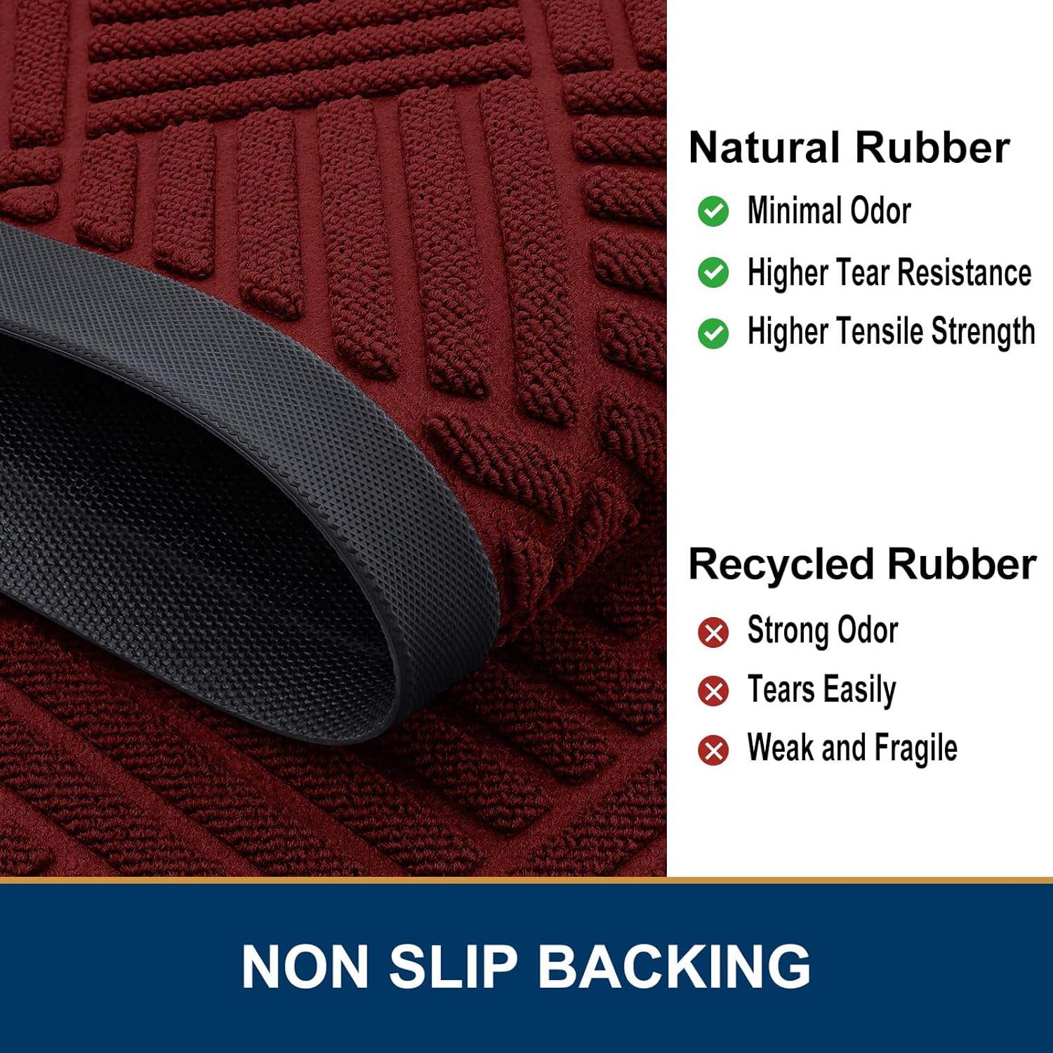 Smiry Front Door Mat Outside Entrance, Heavy Duty Outdoor Indoor Mat, Natural Rubber Doormat, Non Slip, Trap Dirt and Moisture, Easy Clean, Low Profile Patio Porch Entryway Mat, 29.5x17, Red