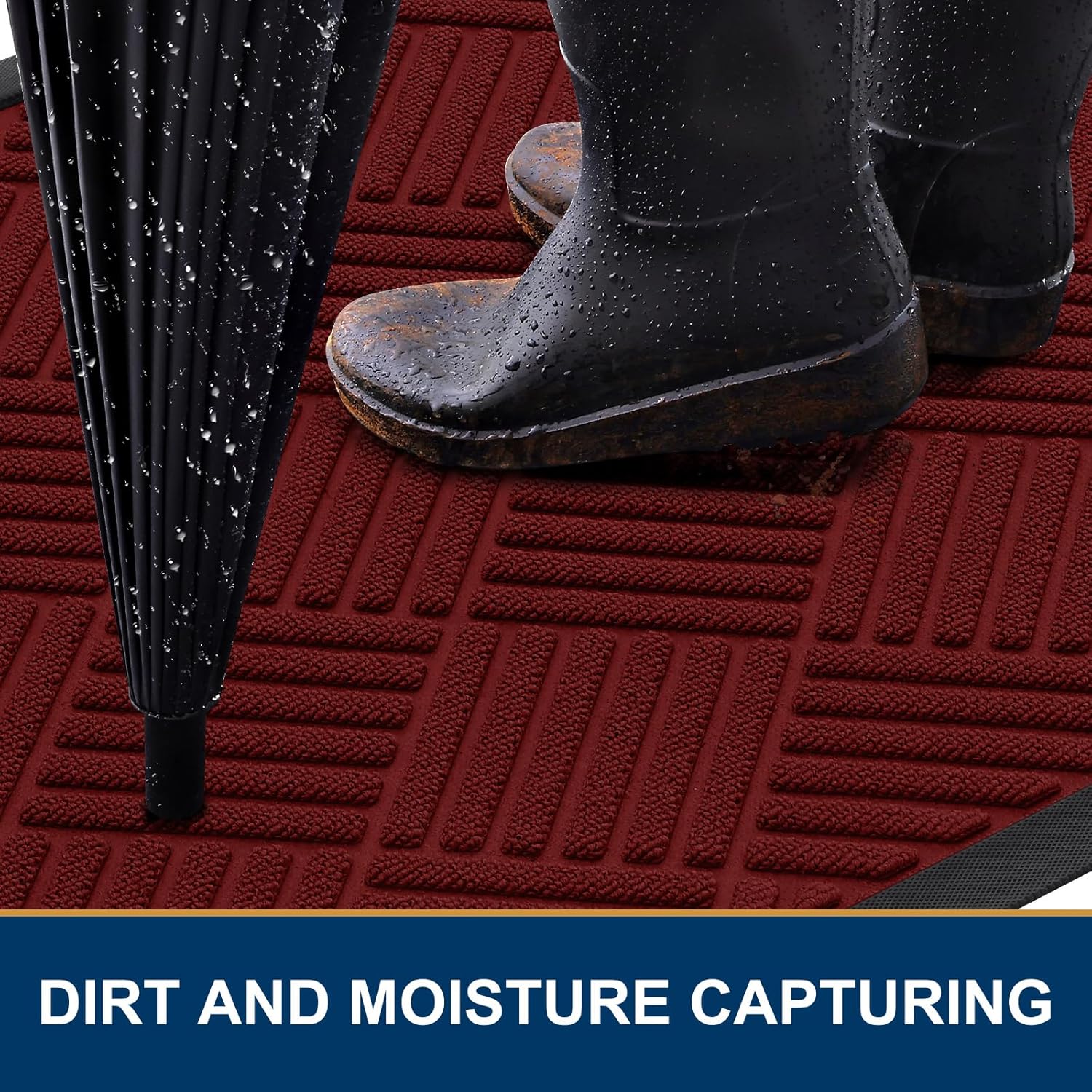 - Capture Dirt and Moisture: The surface of the Smiry door mat is crafted from woven polyester fabric. The deep grooves can effectively trap the dust, gravel, mud, sand and other clutter. The sturdy beveled rubber edge will not accumulate water. Even rainy, snowy or muddy weather will keep your home dry and clean