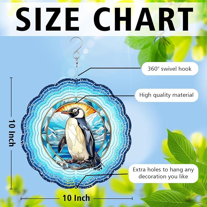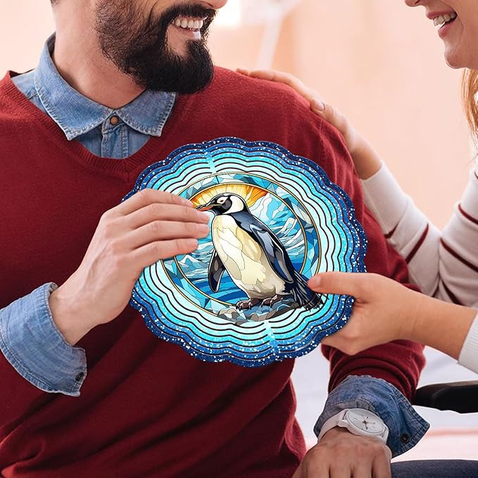 Penguin Yard and Garden Wind Spinner, Unique 3D Hanging Penguin Wind Spinner
