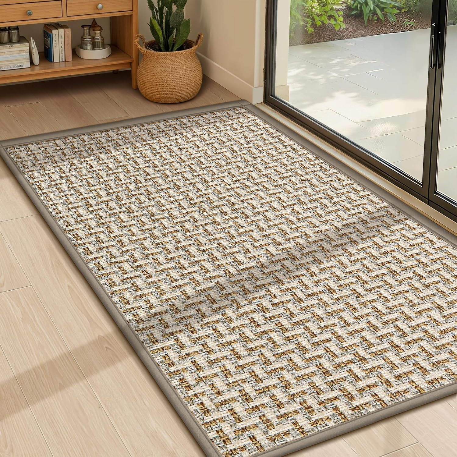 - Low Profile Design: Our front door rug feature a low profile design with a thickness of only 0.2" to fit under doors without curling up. Entryway rug is suitable for front/back doors, bathrooms, kitchens and any other high traffic areas