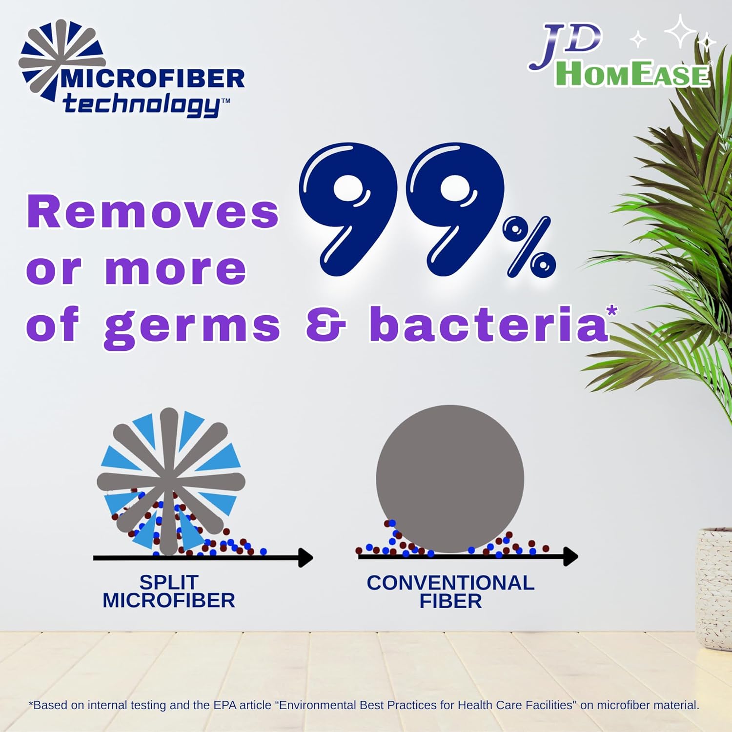 - REMOVES OVER 99% OF GERMS AND BACTERIA - Using split microfiber technology, proven to trap and lift dirt, dust, pet hair, allergens, and germs. Backed by internal testing and studies from the EPA and NIH showing up to 99% bacteria removal, even when used with only water.