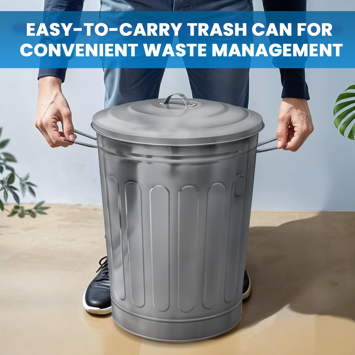 - Rust-Resistant Finish: the galvanized steel surface is rust-resistant preventing corrosion and maintaining the can's sleek appearance over time even with outdoor exposure