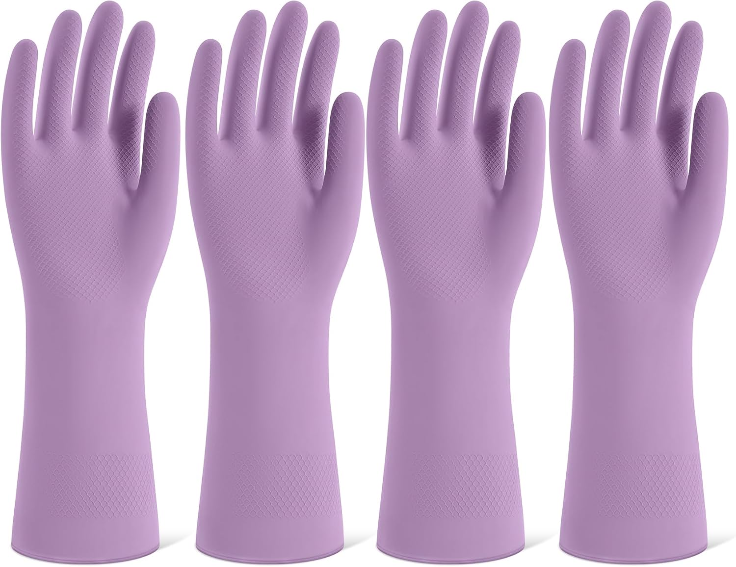- Style Meets Function: This set includes 4 pairs of cleaning gloves in a single elegant color, perfect for daily use across multiple cleaning tasks. Designed for durability and comfort, these reusable rubber gloves help streamline your routine while maintaining a clean, cohesive look throughout your home.