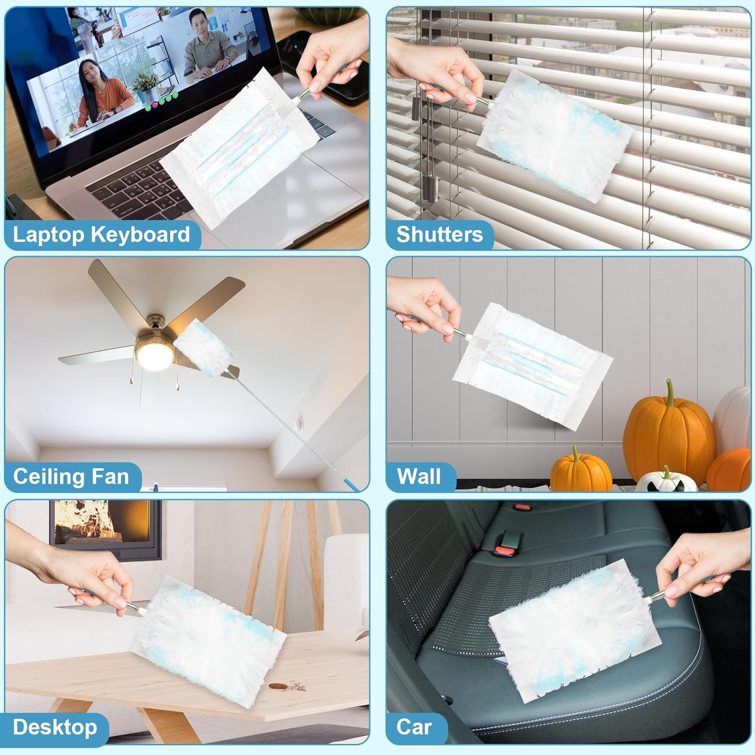 - 【5 level adjustable telescopic handle】The for swiffer Duster heavy duty refills are Made of ABS plastic + aluminum alloy, sturdy and durable, 5 level telescopic length (12 inches to 31 inches) can be adjusted freely. Suitable for office and home scenes, it can easily clean electronic products, furniture, small objects, blinds, ceiling fans, cars, ceilings, glass, etc. as well as narrow gaps and hard to reach areas.