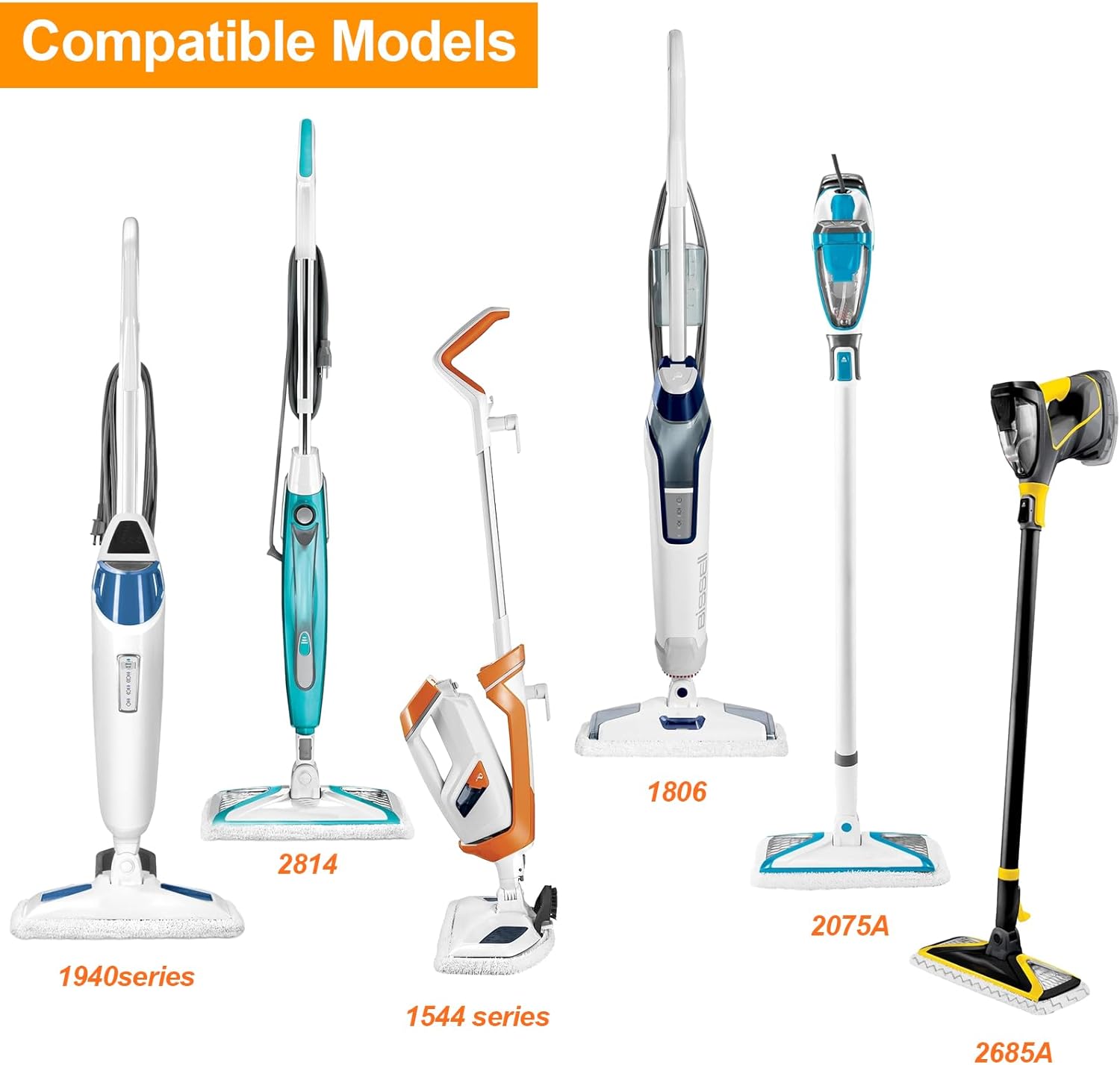 - 【Compatible Models】Bissel steam mop replacement pads fit for Bissell PowerFresh steam mop: 1940 1806 1440 1544 2685A 2075 Series, models 19401, 19402, 19404, 19408, 19409, 1940A, 1940F, 1940Q, 1940T, 1940W, B0006, B0017,15441, 15443, 15446, 15448, 1544A, 1544B, 2685A, 2075A, 2181, 2814. Compare to Part number - 5938 & 203-2633, 1606668 and 1606669.