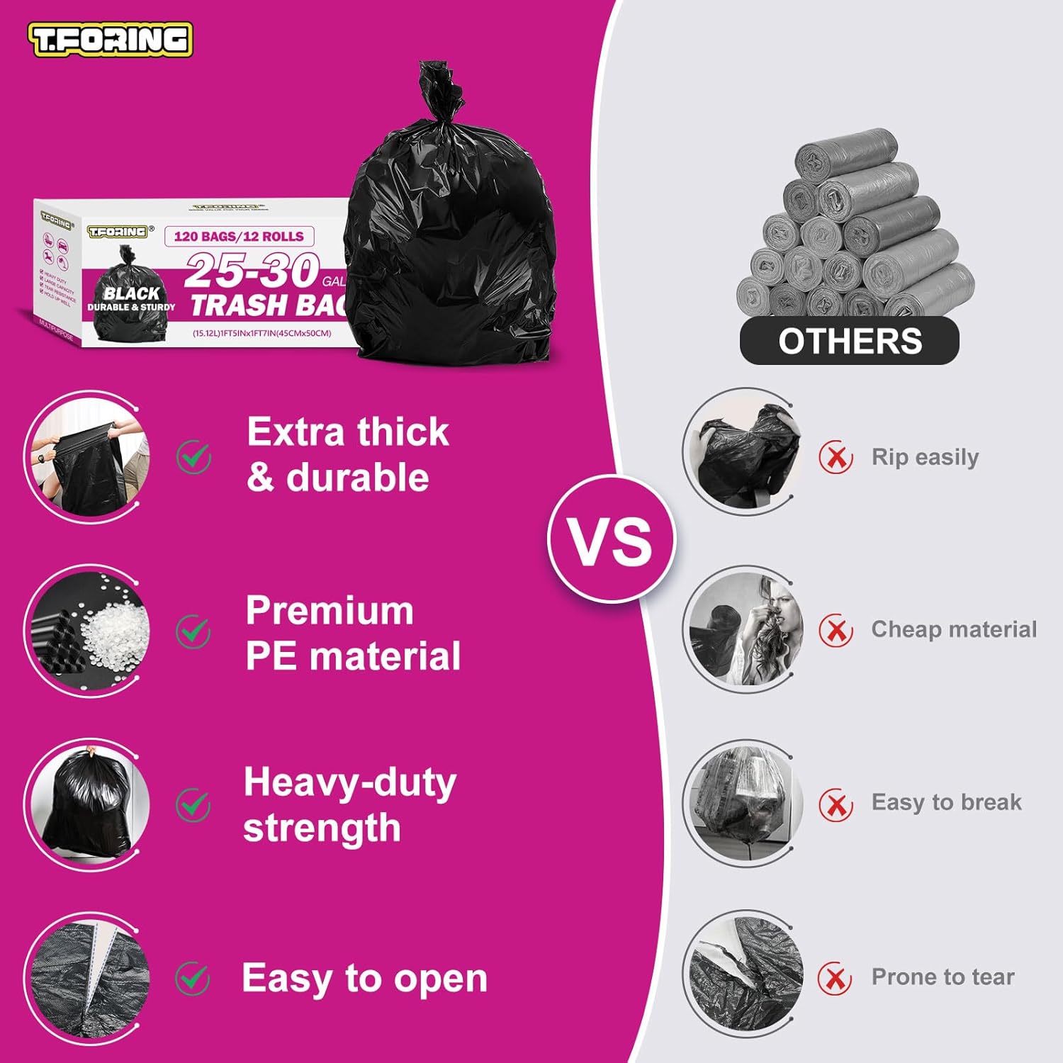 25-30 Gallon Trash Bags Black 120 Count - 32" x 36" Large Kitchen Garbage Bags, 20+ Gallon Trash Can Liners Unscented, Multipurpose for Home, Office, Daily Household Use