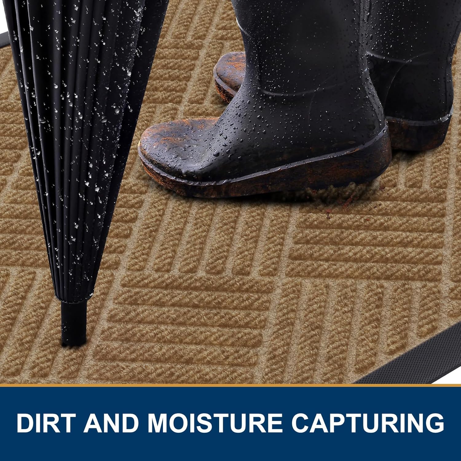- Capture Dirt and Moisture: The surface of the Smiry door mat is crafted from woven polyester fabric. The deep grooves can effectively trap the dust, gravel, mud, sand and other clutter. The sturdy beveled rubber edge will not accumulate water. Even rainy, snowy or muddy weather will keep your home dry and clean
