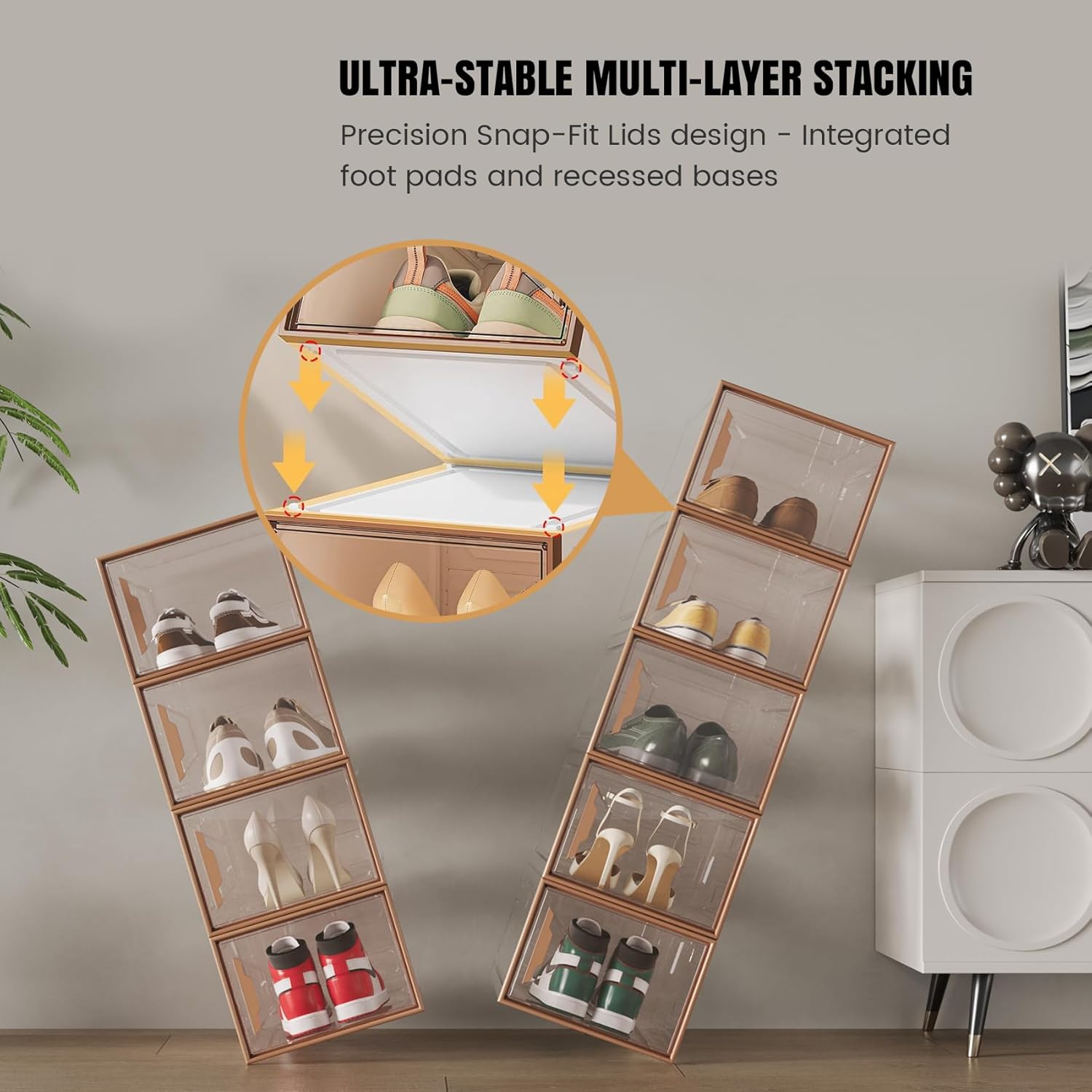- 【Clear & Thicken Shoe Boxes】: Crafted from reinforced PP+PC transparent plastic, these sturdy shoe boxes resist cracking, warping, and crushing. Featuring 6-Panel hard plastic versus thin PP-only boxes, they support heavier loads without deformation for extended longevity. The eco-friendly transparent design ensures crystal-clear visibility while protecting against dust and moisture.