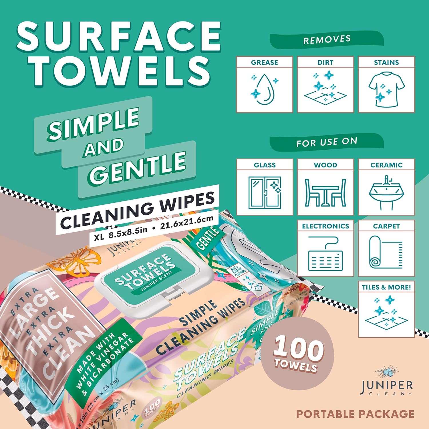 - 【EFFECTIVE MULTI-SURFACE CLEANING】Juniper Clean multi-purpose wipes are tough on grease, grime, and everyday messes. Use them confidently on hard surfaces such as countertops, wood, stainless steel, granite, appliances, phones, and more. Whether you're handling light cleanups or tougher tasks, these wipes are your go-to for a clean home.