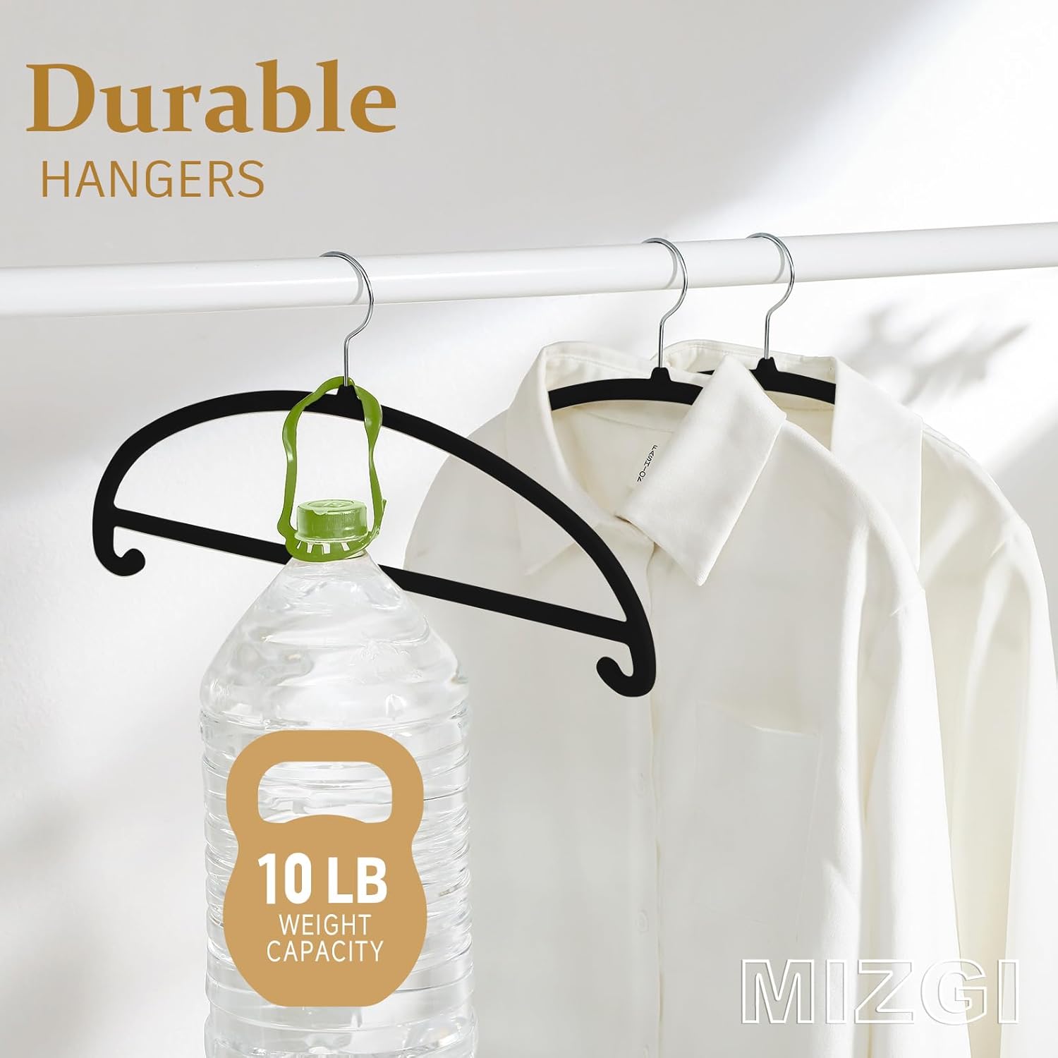 MIZGI 50 Pack Black Velvet Hangers - No Shoulder Bumps, Heavy Duty Non-Slip Chrome Hooks for Jackets, Coats, Pants