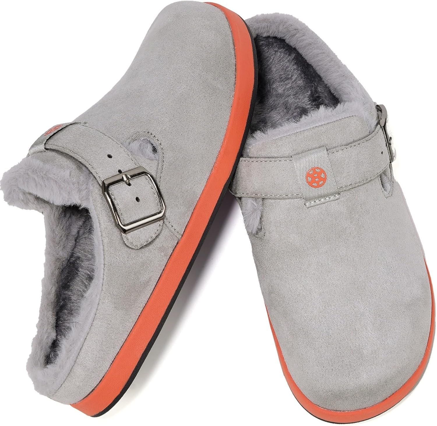 Fur Lined Clogs for Women Men Suede Winter Slippers Arch Support Slip on Mules Potato Shoes with Removable Cushion Footbed Warm Home House Shoes