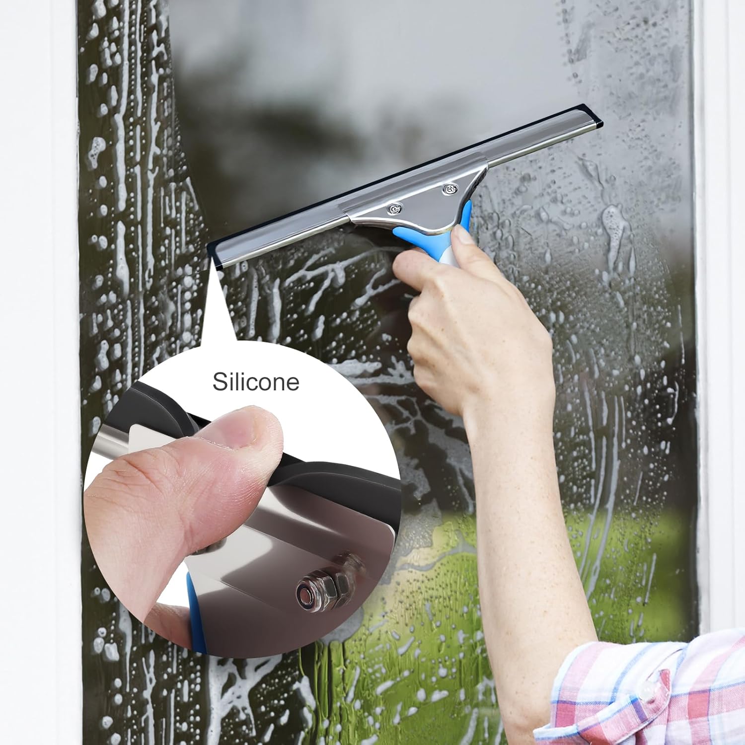 - Professional Cleaning Tools: The squeegee adopt stainless steel design, silicone squeegee blade, rubber non-slip grip, super microfiber scrubber, all with professional-grade to ensure efficient cleaning experience.
