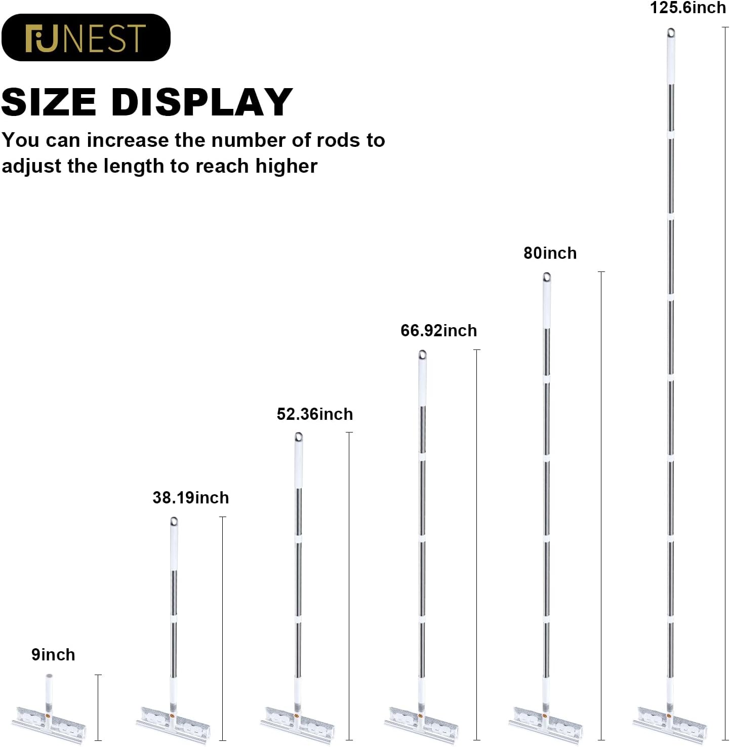- [High-Efficiency Window Cleaning Kit] The Funest 2-in-1 window cleaner tool comes with an extra-large 126” squeegee, 4 microfiber cloths, and a professional rubber squeegee. Effortlessly remove water spots, soap scum, and dirt from shower doors and glass surfaces. The firm 8” rubber squeegee blade delivers professional cleaning power, and the squeegee extends up to 35” and 126” for easy access to hard-to-reach areas.